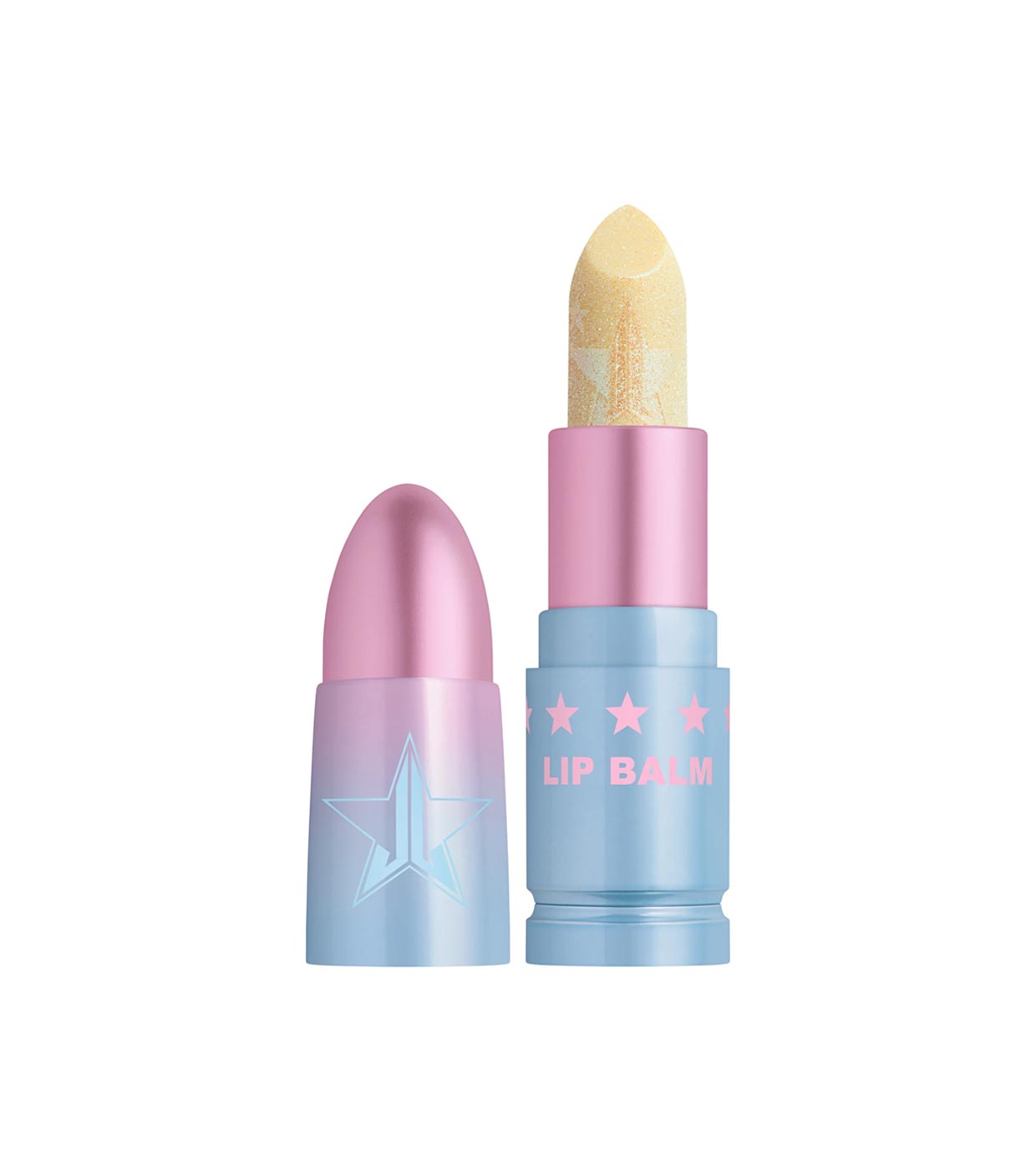 Befeuchten Sie Ihre karamellfarbenen Lippen mit dem Hydrating Glitz Lippenbalsam aus der Cotton Candy Queen-Kollektion von Jeffree Star Cosmetics..
