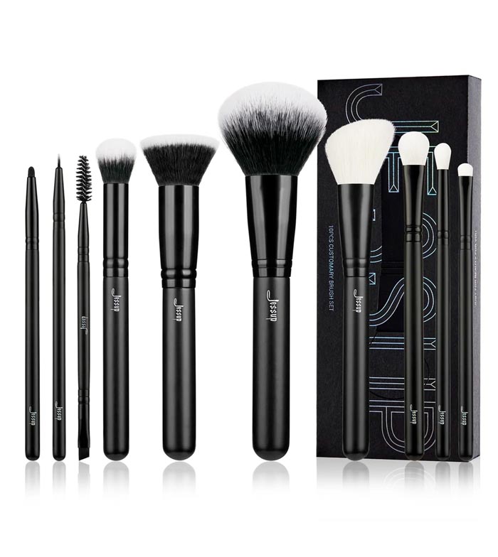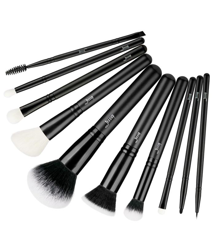 Satz mit 10 handelsüblichen Pinseln in Schwarz.