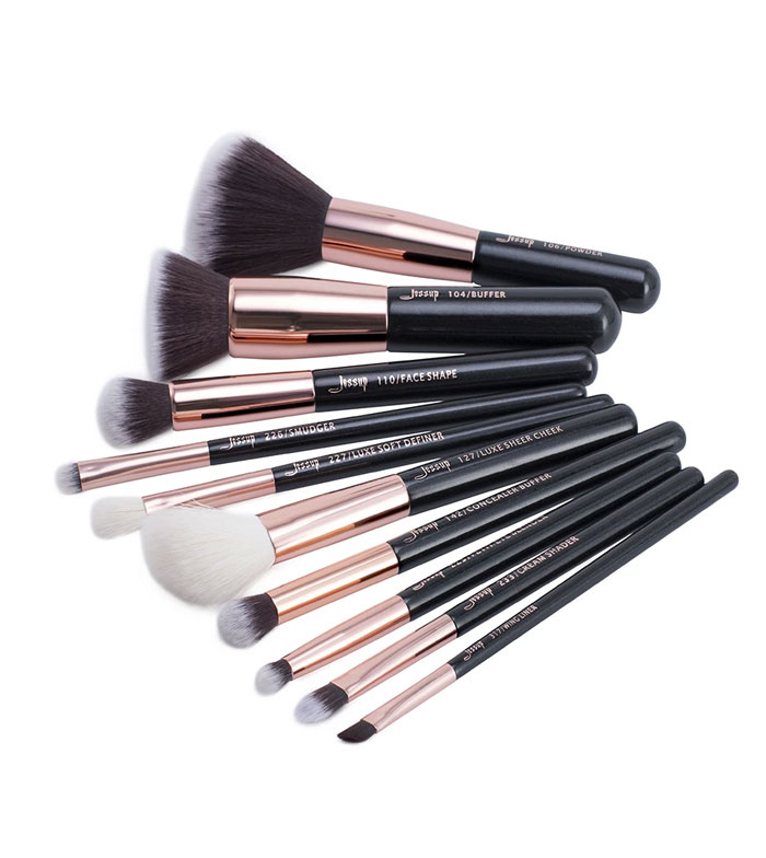 Set mit 10 Farbpinseln Black/Rose Gold.