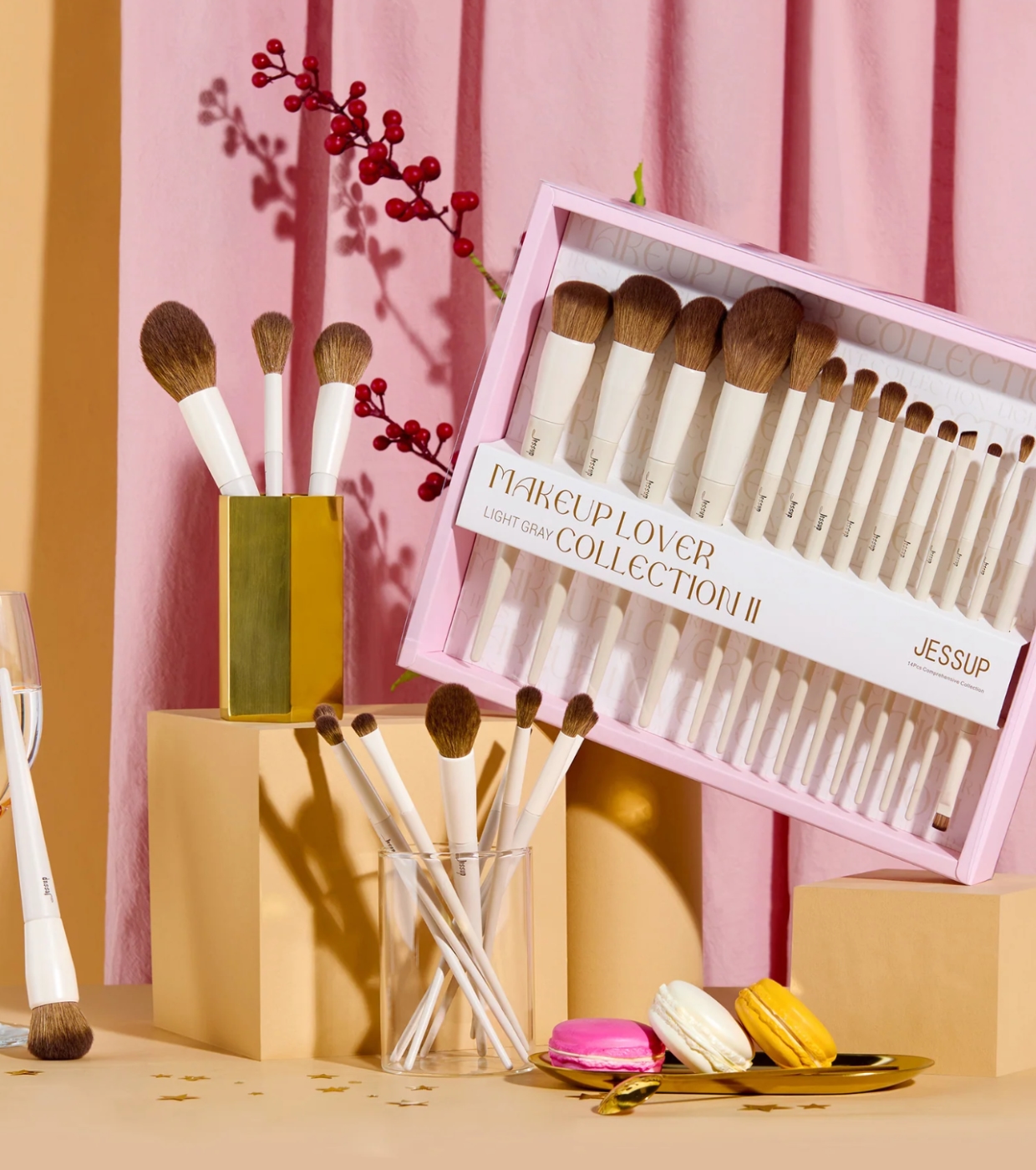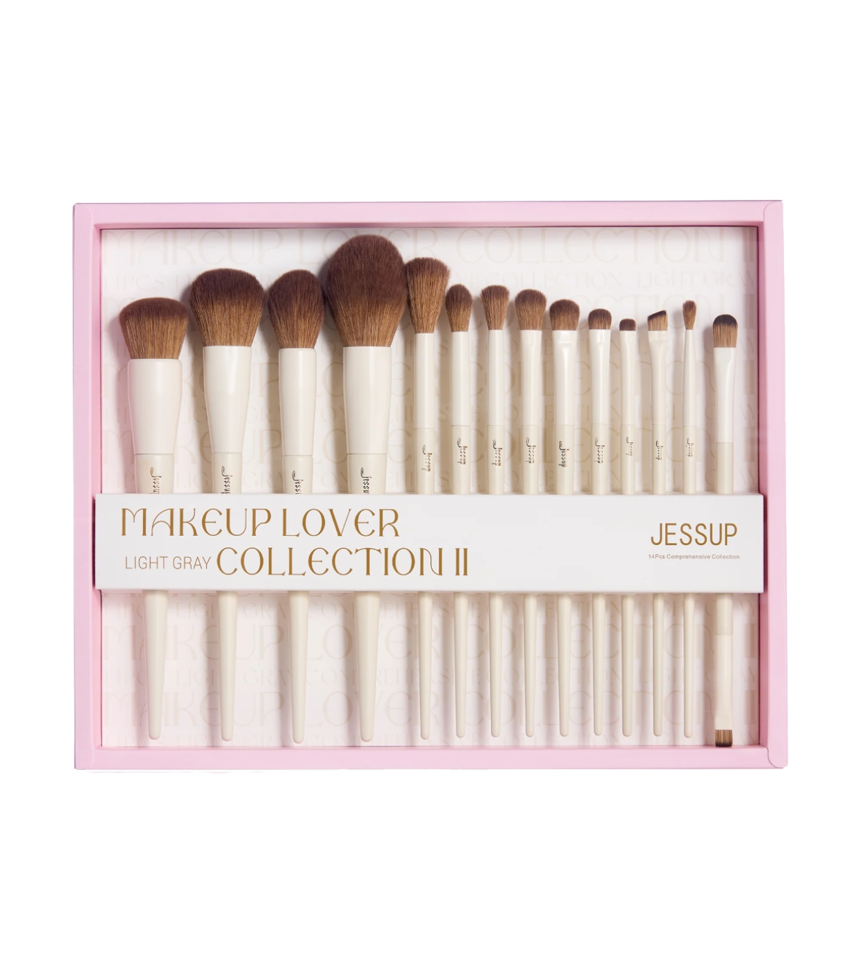 Entdecken Sie das ultimative Make-up-Tool für Make-up-Liebhaber: das 14-teilige Pinselset Light Gray mit Etui von Jessup Beauty , das entwickelt wurde, um zu Hause ein makelloses, professionelles Finish zu erzielen.