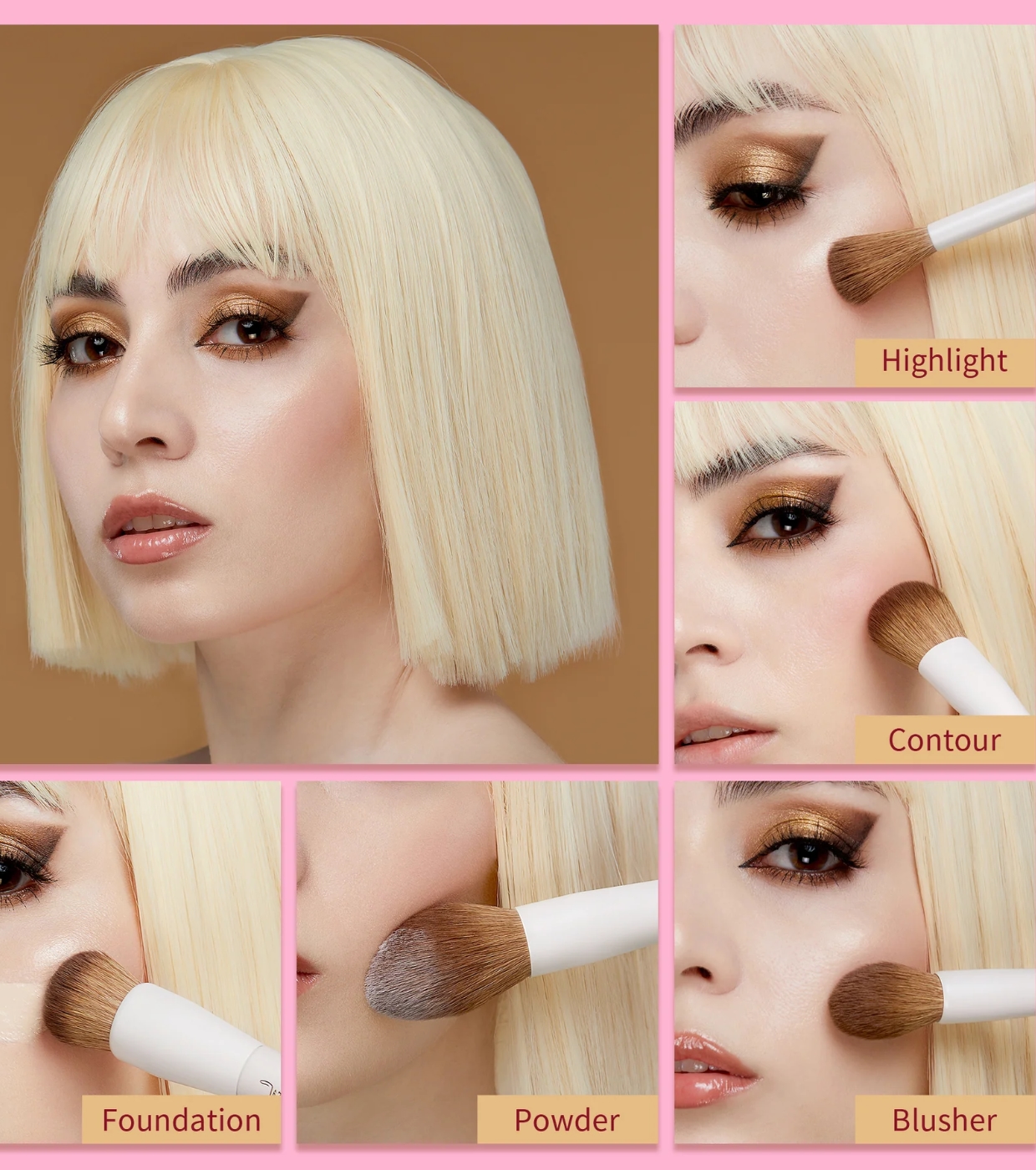 Dieses komplette Set enthält wichtige Gesichtspinsel und Präzisionspinsel für die Augen und verfügt über ein elegantes, funktionales Design, das für alle Arten von Produkten geeignet ist.