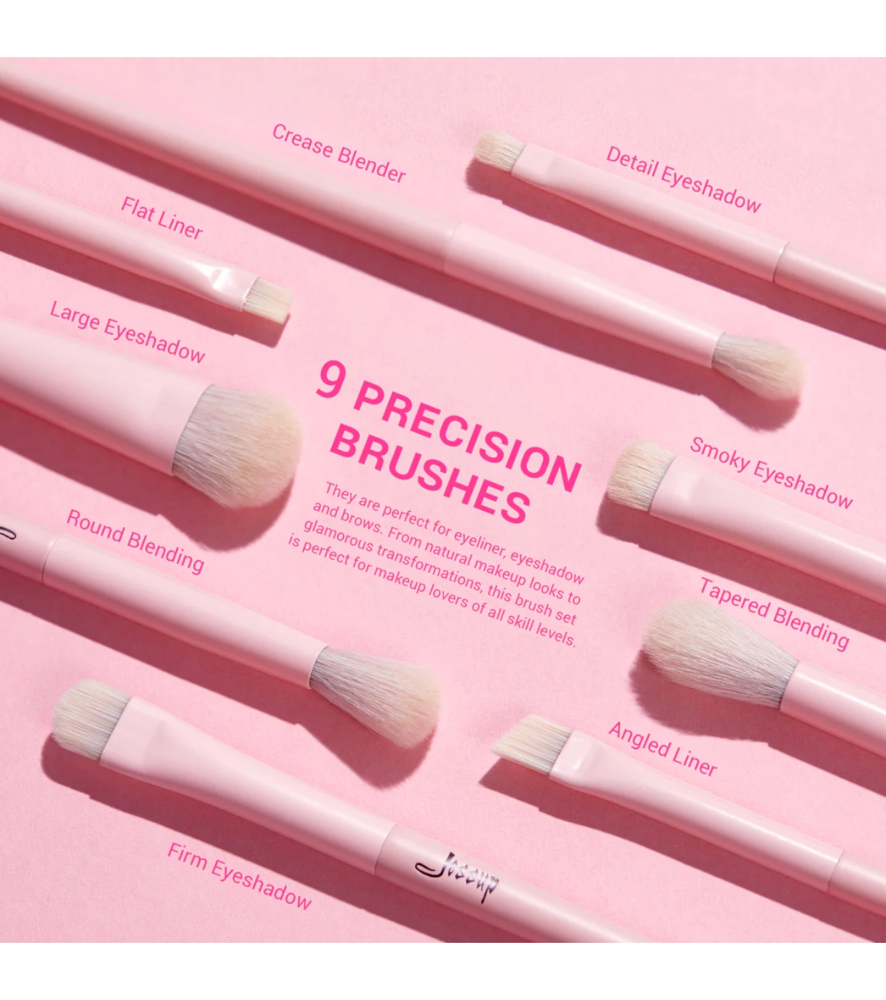 - x9 Augenpinsel: Enthält 4 Lidschattenpinsel, 3 Mischpinsel und 2 Linerpinsel. Diese Pinsel wurden entwickelt, um intensive Farben aufzutragen und die Augen präzise zu definieren.
