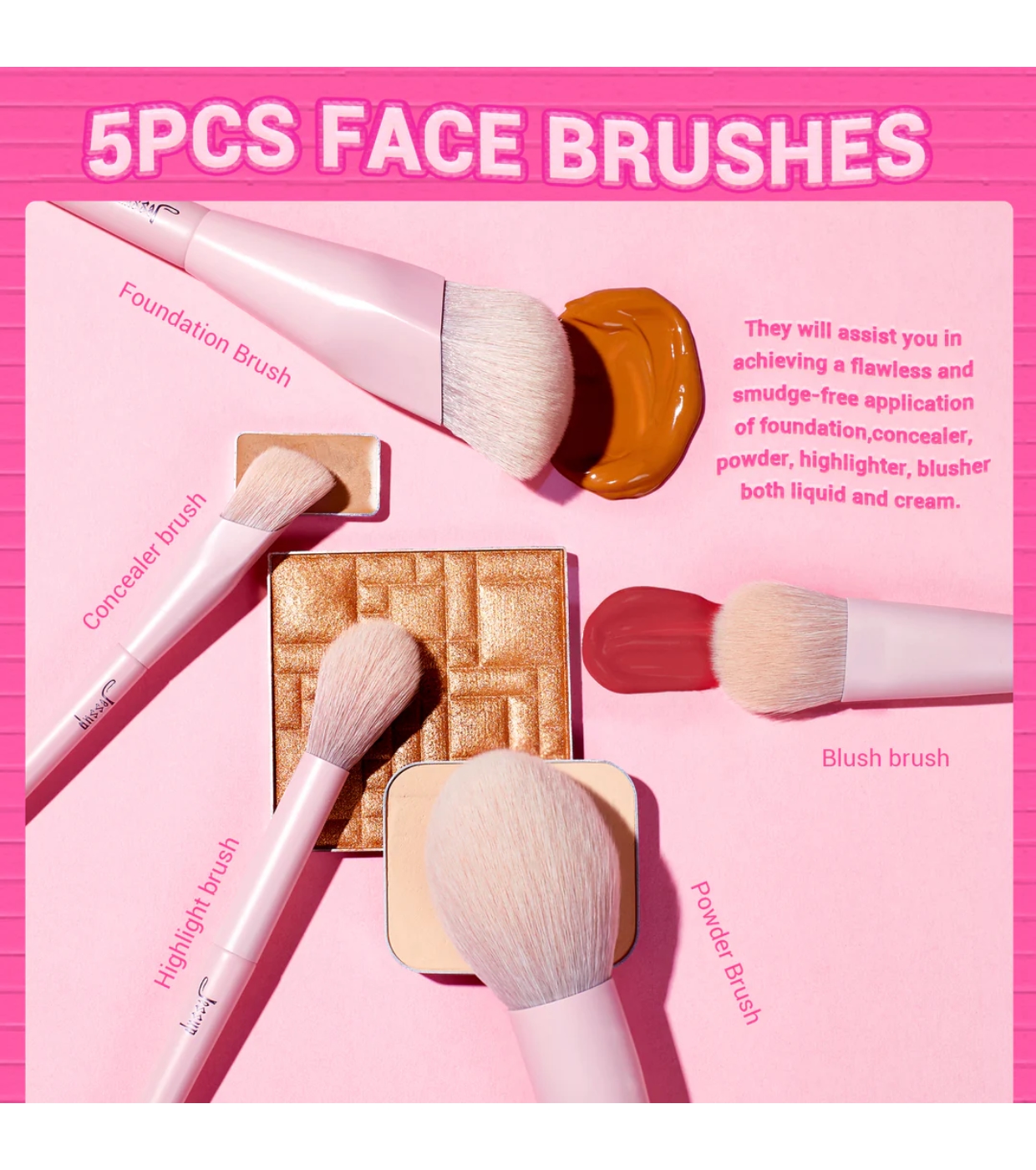 - x5 Gesichtspinsel: Dieses Set enthält hochwertige, dicht gefüllte Pinsel mit synthetischen Borsten, die für eine schnelle, streifenfreie Abdeckung sorgen und ein leichtes und natürliches Finish erzielen.