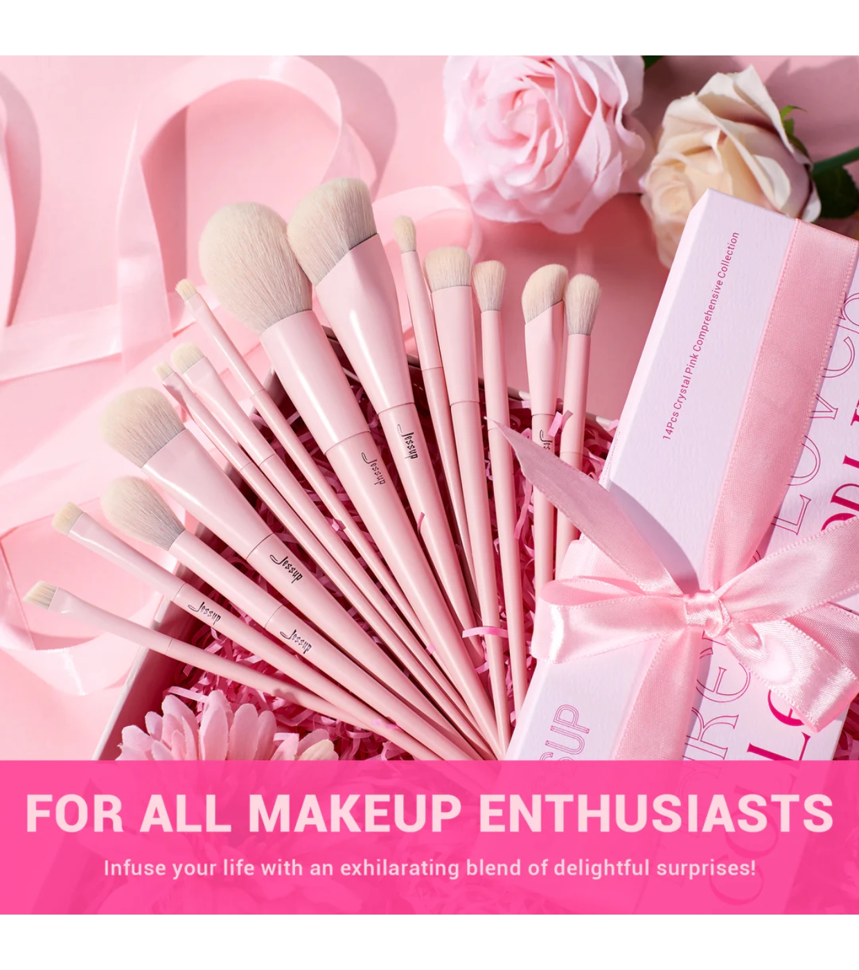 Set mit 14 Pinseln Crystal Pink Makeup Lover Collection IV von Jessup Beauty.