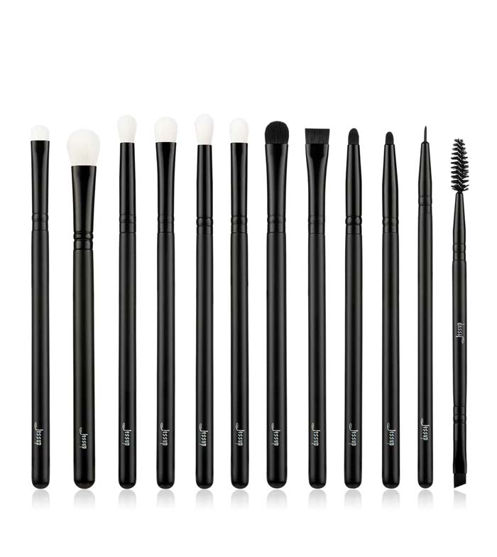 Set mit 12 schwarzen Augenpinseln.