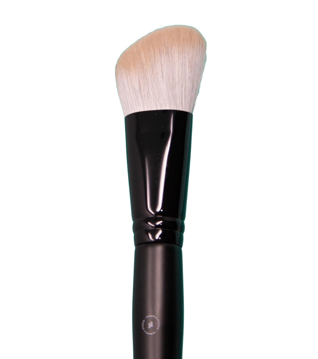 Mit diesem abgewinkelten Pinsel können wir Bronzing-Puder perfekt unter dem Wangenknochen auftragen.