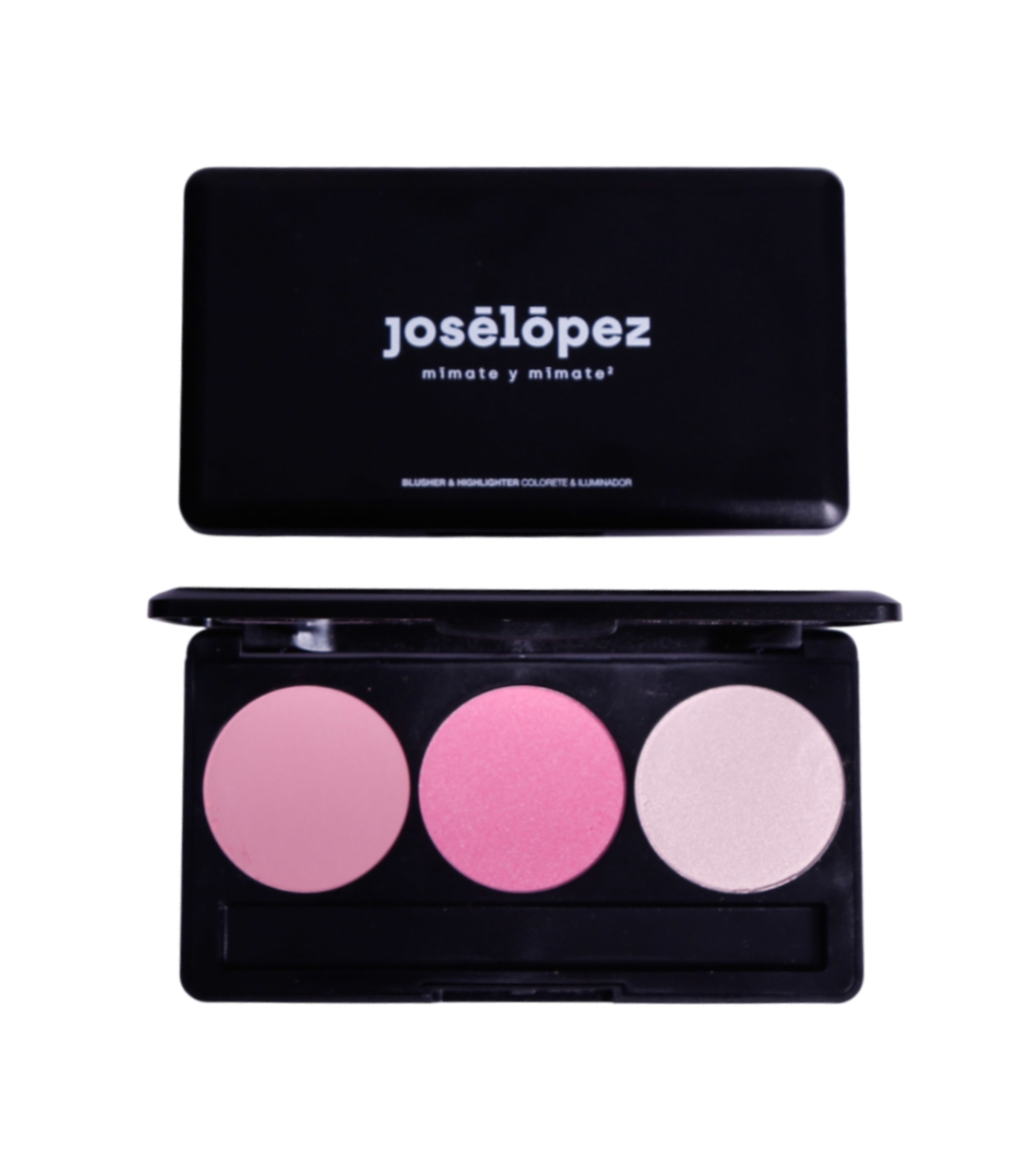 Diese Gesichtspalette von José López kombiniert zwei hochpigmentierte kühle Rouges mit einem ultrafeinen Highlighter, der mit der Haut verschmilzt und für Frische sorgt, ohne Ausdruckslinien hervorzuheben.