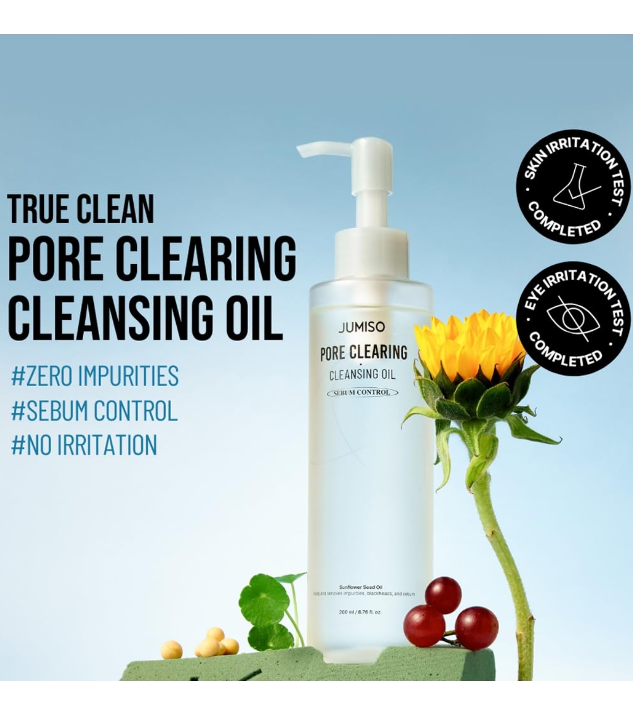 Jumiso Pore Clearing Oil ist ein sanftes und dennoch wirkungsvolles Reinigungsmittel mit natürlichen Ölen wie Jojobaöl und Sonnenblumenöl.