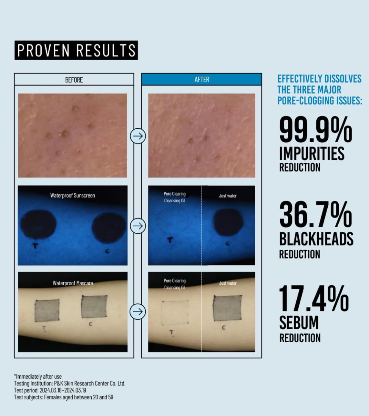 Löst wirksam die größten Porenverstopfenden Probleme wie Unreinheiten, Mitesser und Talg und entfernt gleichzeitig effektiv wasserfeste Sonnencreme und Mascara.