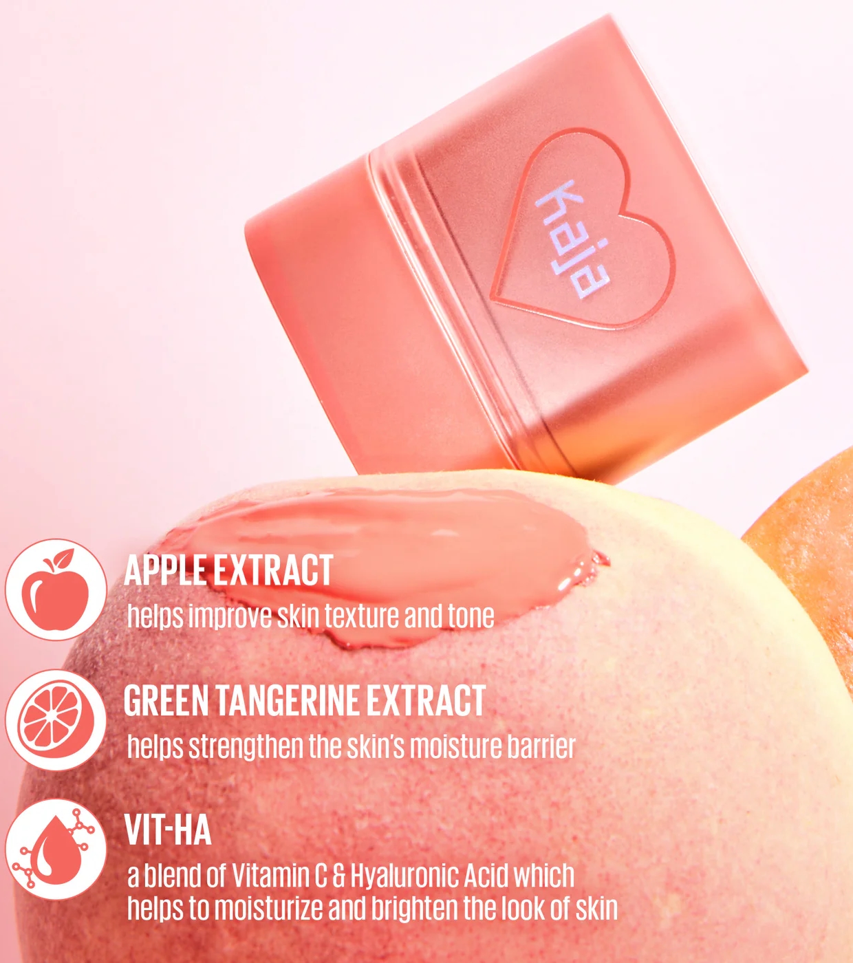 Octyldodecanol, Diisostearyl Malate, Pentaerythrityl Tetraisostearate, Polyglyceryl-2 Triisostearate, Synthetic Wax, Tridecyl Trimellitate, Polyisobutene, Titanium Dioxide (Ci 77891), Hydrogenated Polyisobutene, Cera Microcristallina/Microcrystalline Wax/Cire Microcristalline, Phytosteryl/Isostearyl/Cetyl/Stearyl/Behenyl Dimer Dilinoleate, Caprylic/Capric Triglyceride, Vp/Eicosene Copolymer, Prunus Persica (Peach) Fruit Extract, Pyrus Malus (Apple) Fruit Extract, Citrus Unshiu Peel Extract, Sodium Hyaluronate, Hydrolyzed Hyaluronic Acid, Hyaluronic Acid, Ascorbic Acid, Tocopherol, Red 6 (Ci 15850), Yellow 5 Lake (Ci 19140), Stearalkonium Hectorite, Red 7 Lake (Ci 15850), Iron Oxides (Ci 77492, Ci 77491), Yellow 6 Lake (Ci 15985), Propylene Carbonate, Dehydroacetic Acid, Aqua/Water/Eau, Dimethicone, Sorbitan Sesquioleate, Polyglyceryl-6 Polyricinoleate, Butylene Glycol, Propanediol, Polyhydroxystearic Acid, Lecithin, Isostearic Acid, Isopropyl Myristate, Ethylhexyl Palmitate, Polyglyceryl-3 Polyricinoleate, 1,2-Hexanediol, Phenoxyethanol, Ethylhexylglycerin, Fragrance (Parfum)