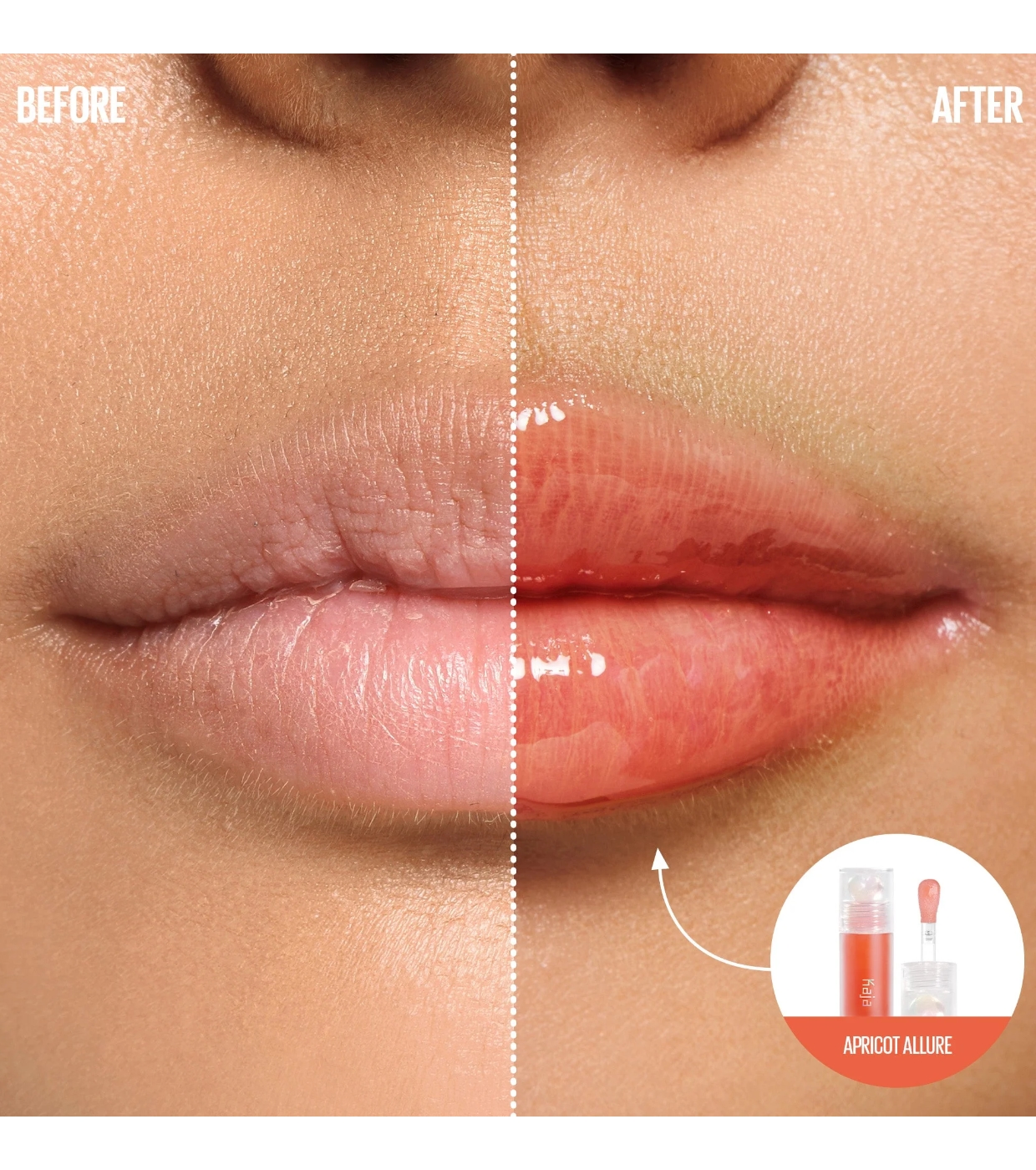 Erhältlich in fünf ultratransparenten Farbtönen und drei milchigen Farbtönen mit sanfter Pigmentierung. Jedes Öl ist mit nährenden Inhaltsstoffen und Fruchtextrakten angereichert, die Ihre Haut pflegen.