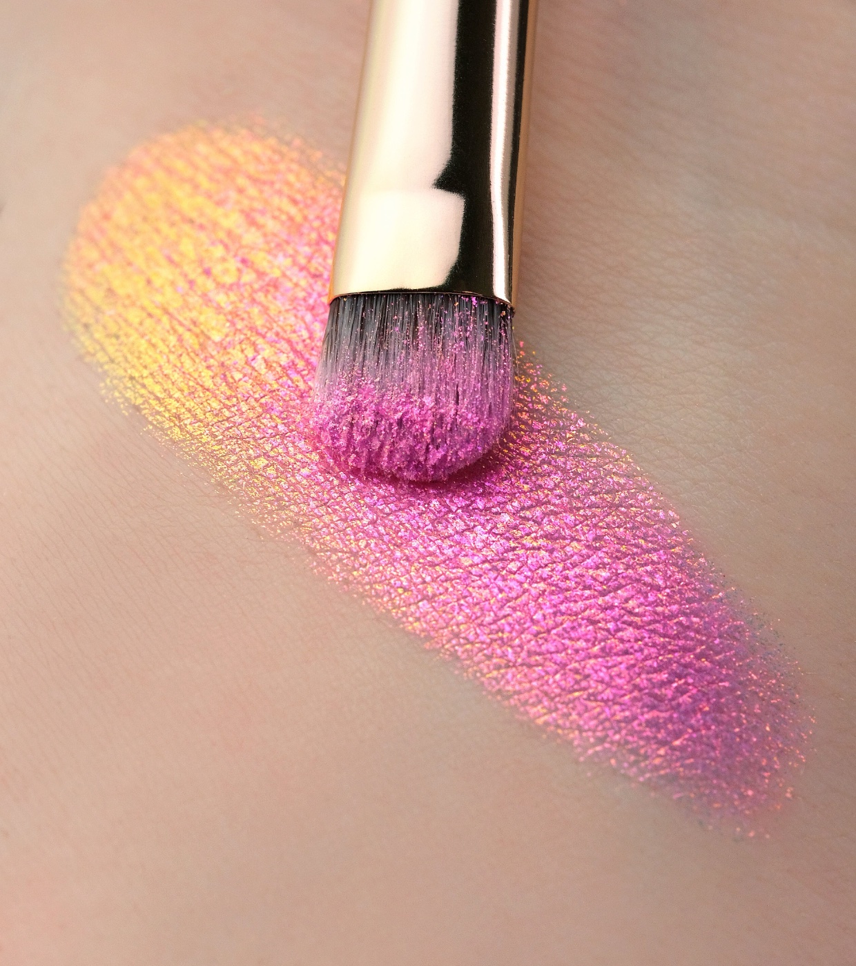 Tragen Sie eine Schicht über einer farbigen Lidschattenbasis auf, um einen Hauch von transparentem, leuchtendem Glanz zu erzeugen, oder erzielen Sie auf Wunsch ein deckendes Finish.