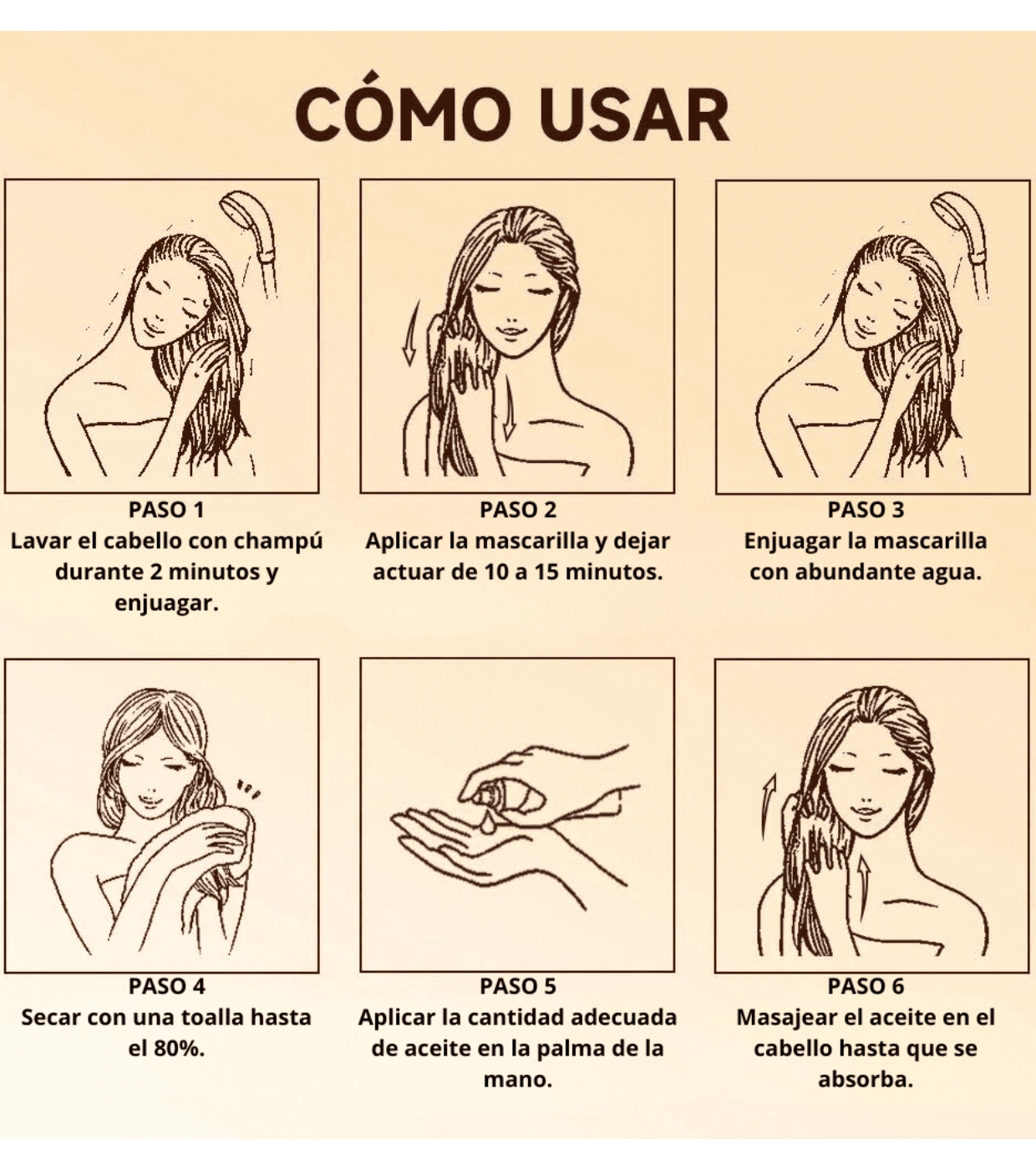 Haare: Für glänzendes, seidiges Haar ein paar Tropfen 3 Minuten lang in Ihr Haar einmassieren.