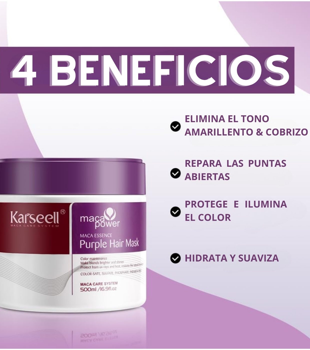 Die Karseell Purple Mask ist eine professionelle Haarmaske, die unerwünschte Gelb- und Messingtöne in blondem, gebleichtem, silbernem oder grauem Haar neutralisieren soll.
