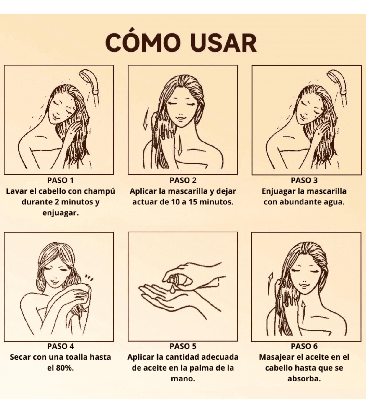 Haare waschen, Feuchtigkeit entfernen und die Karseell-Maske von der Mitte bis in die Spitzen auftragen. Mit Folie oder Wärmehaube abgedeckt 10 bis 20 Minuten bei Wärme einwirken lassen. Auf diese Weise wird die Wirkung verstärkt und das Haar dringt besser in die Haarrinde ein, sowohl als Feuchtigkeitsspender als auch gegen Frizz, und wird besser geglättet. Nach dem Spülen.