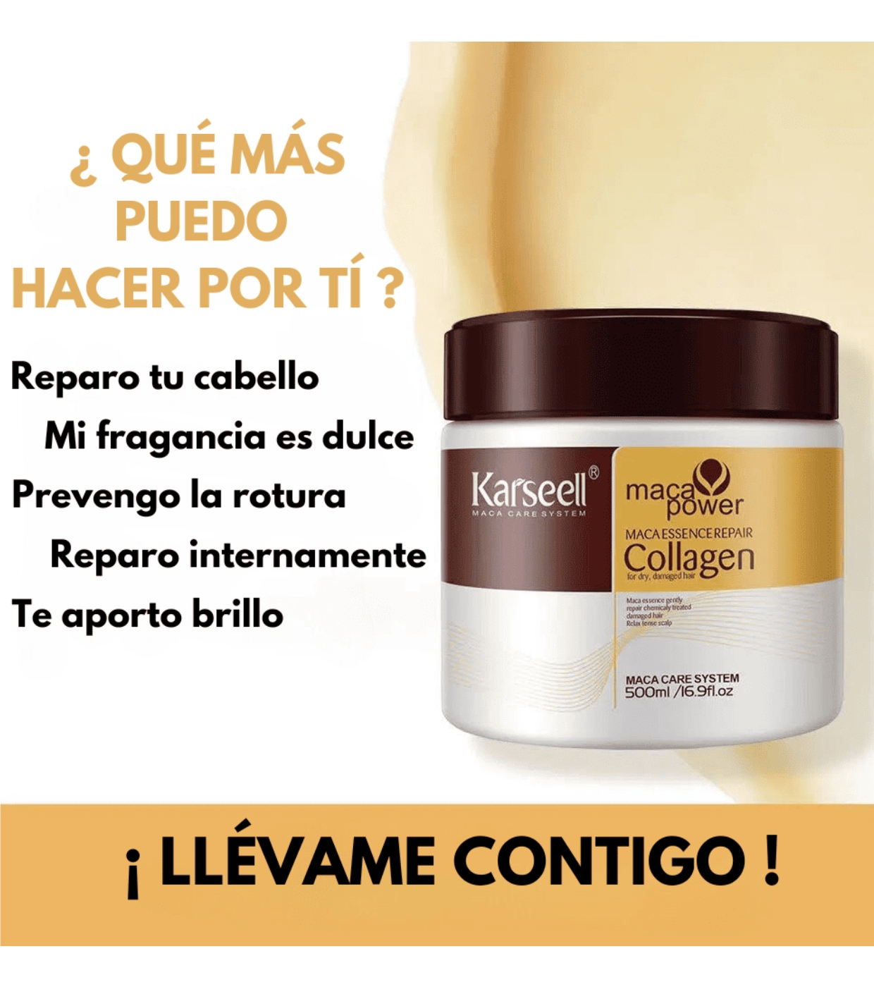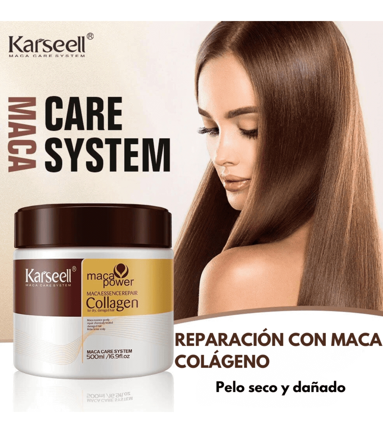 Entdecken Sie die Kraft von weichem, kontrolliertem und lebendigem Haar mit dieser Karseell-Maske , die entwickelt wurde, um Frizz zu beseitigen, intensiv Feuchtigkeit zu spenden und Glanz ab der ersten Anwendung zu verleihen.