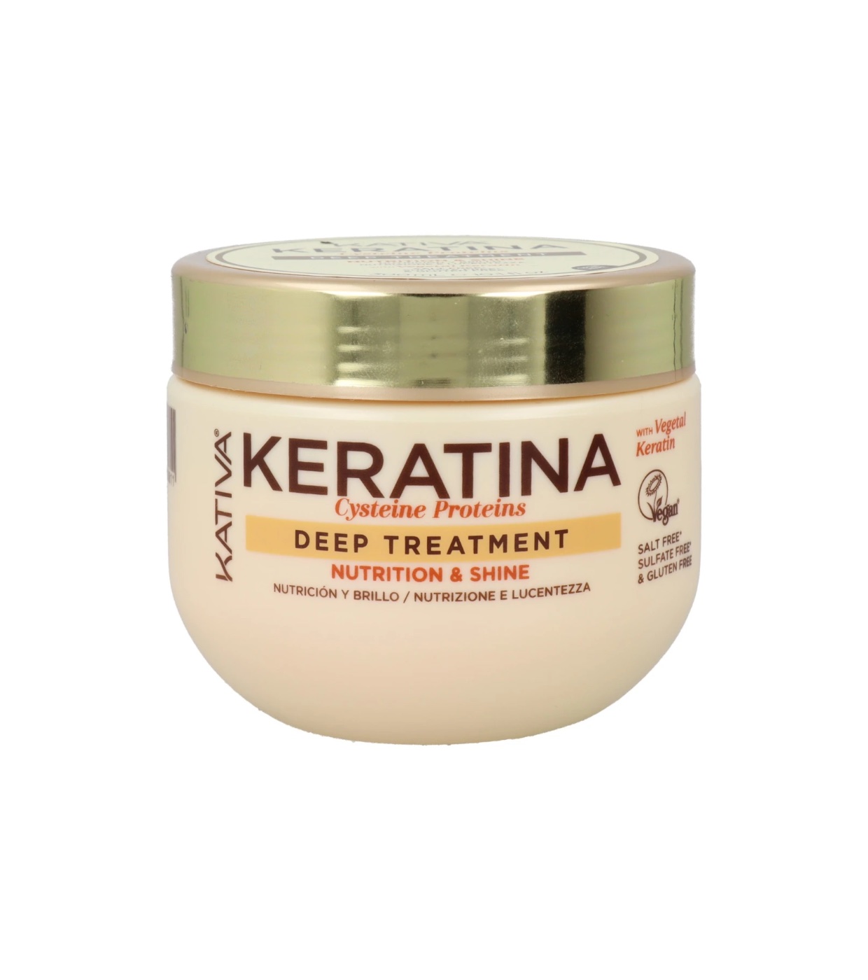 Die nährende und glänzende Maske von Kativa ist eine intensive, salzfreie Cremebehandlung mit Keratin und Ceramiden, die sich besonders für sehr trockenes, geschädigtes oder durch chemische und/oder mechanische Prozesse geschädigtes Haar eignet.