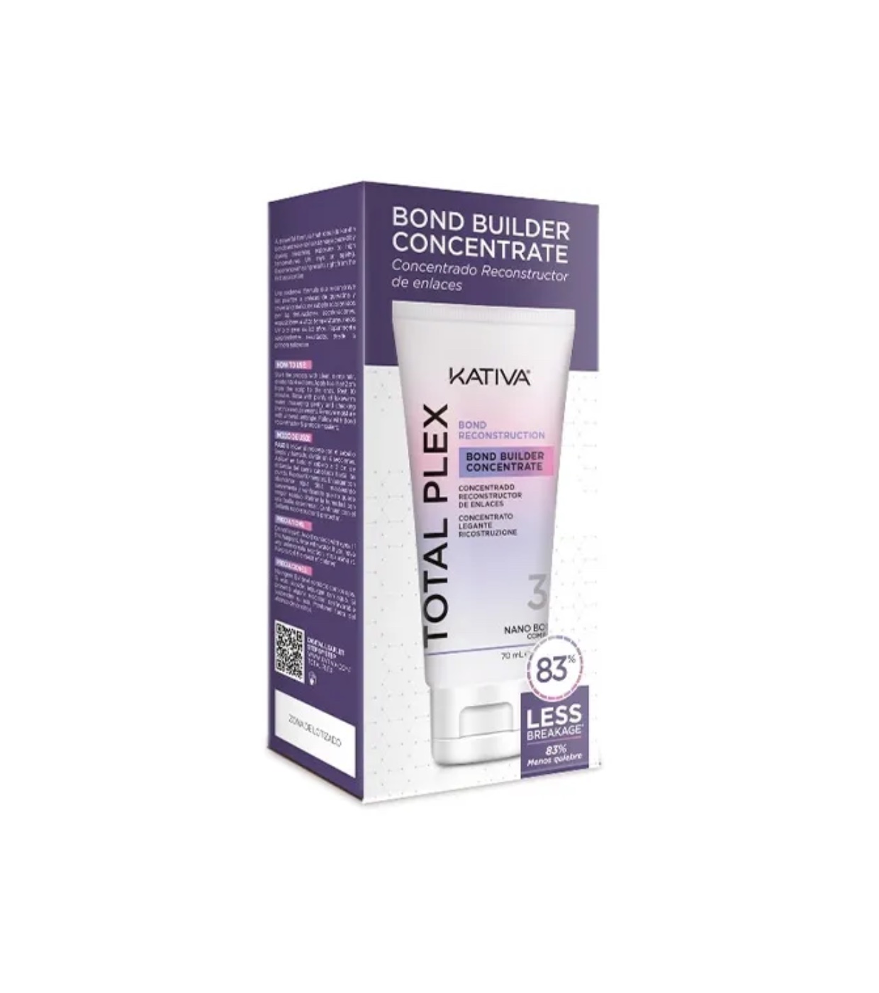Kativa 's Total Plex Reconstructing Concentrate ist der erste Schritt eines professionellen zweiphasigen Reparatursystems, das entwickelt wurde, um Haarschäden, die durch Färben, Bleichen, Hitzestylinggeräte, UV-Strahlung und den Lauf der Zeit verursacht werden, effektiv rückgängig zu machen.