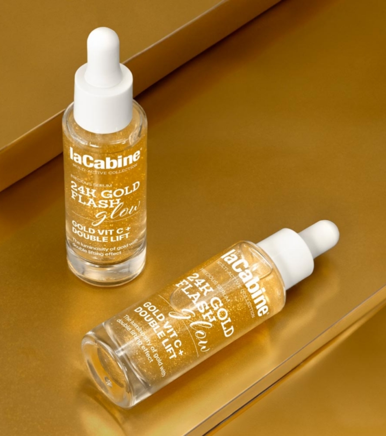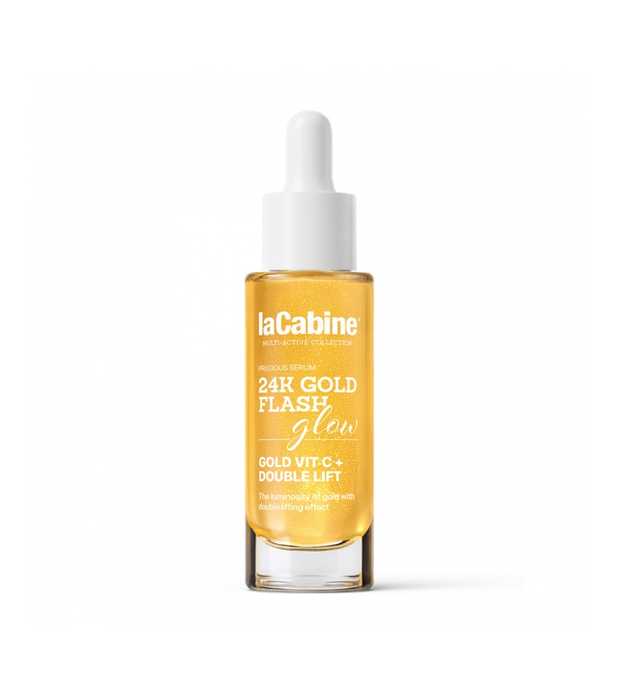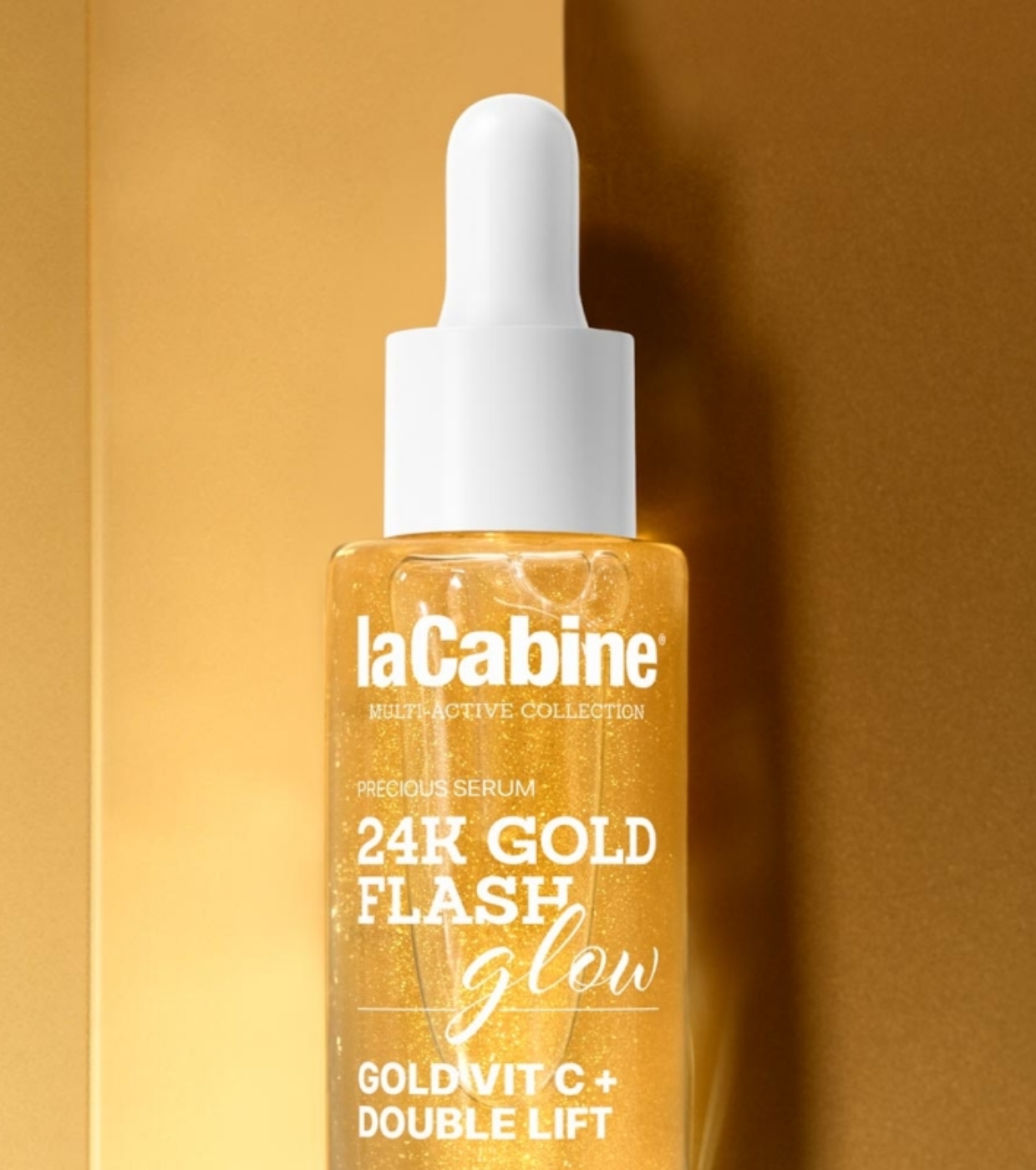 Entdecken Sie das hochentwickelte Serum 24K Gold Flash Glow von La Cabine , das für einen doppelten Lifting-Effekt und ein sofortiges Glow-Finish sorgt.