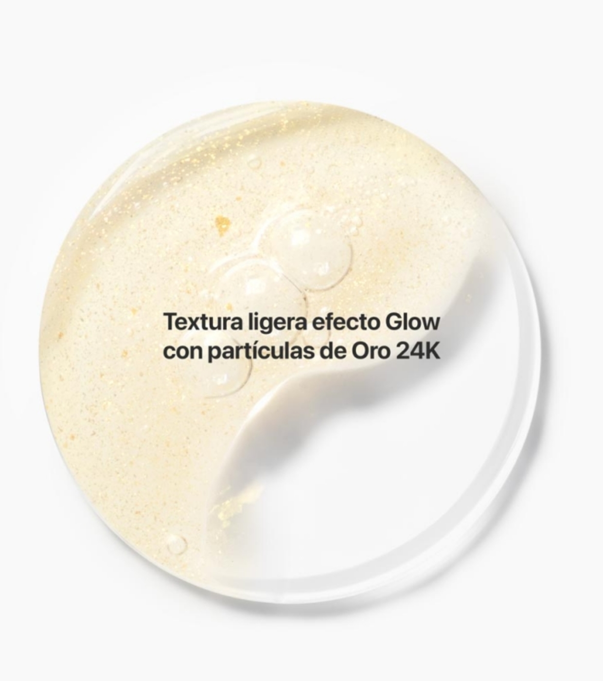 Seine transparente, flüssige Geltextur mit sichtbaren Goldpartikeln zieht schnell ein, ohne Rückstände zu hinterlassen, und hinterlässt ein weiches, frisches Hautgefühl, das perfekt auf die weitere Pflege vorbereitet ist.