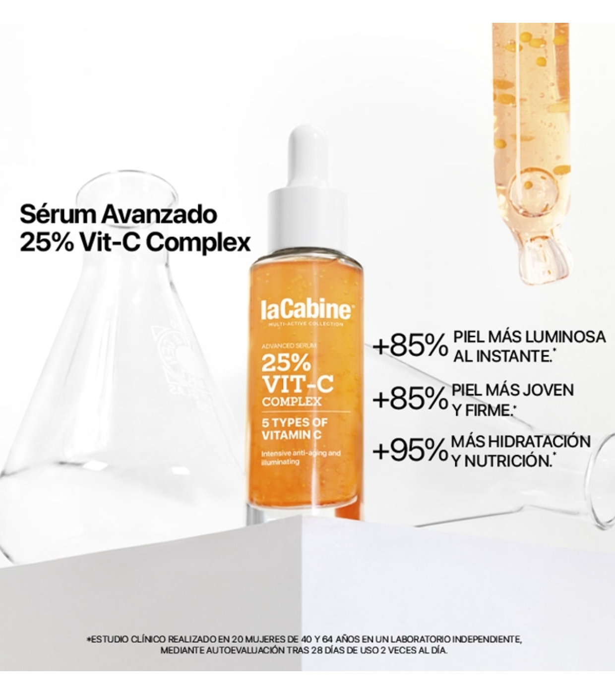 Dieses hochentwickelte Serum der neuesten Generation von 25% Vit-C Complex mit 25 % Vitamin-C-Komplex enthält 25 % Vitamin C in einem fortschrittlichen Komplex aus 5 verschiedenen Typen, der die Haut in ein strahlenderes, festeres und verjüngtes Gesicht verwandeln soll.