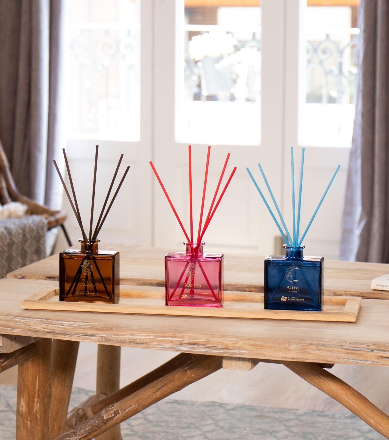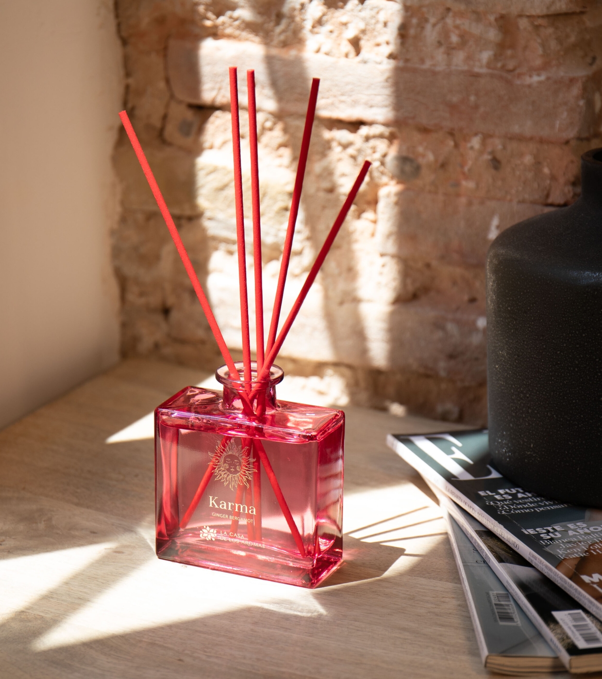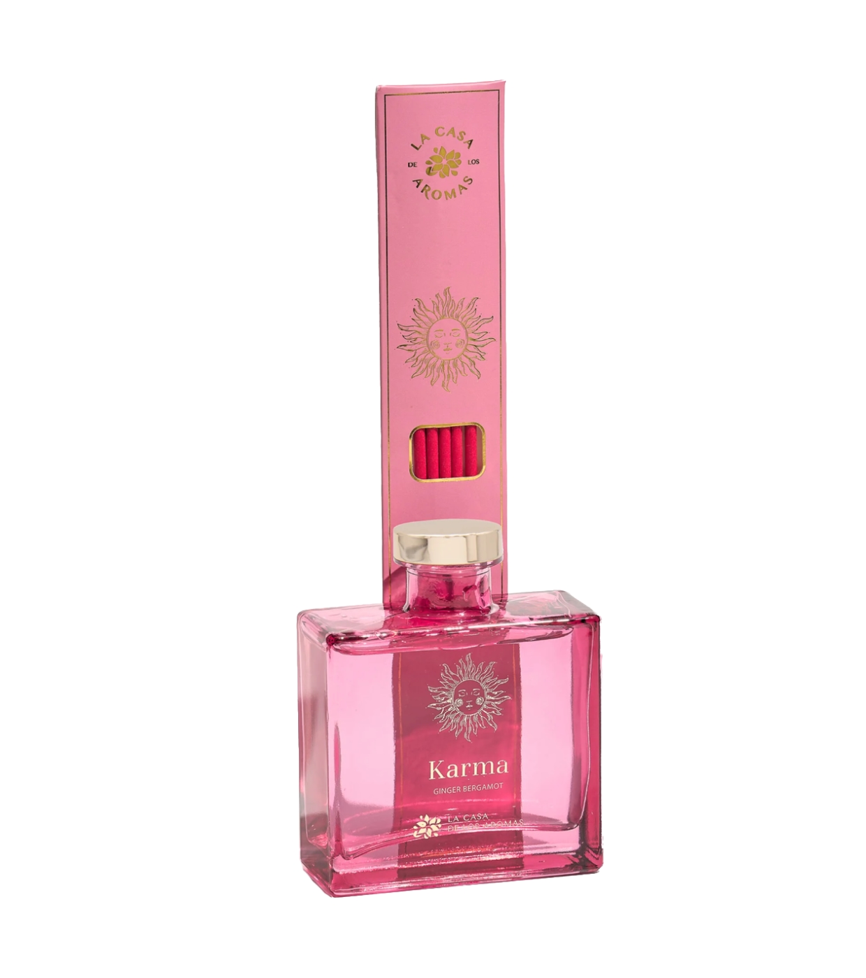Begeben Sie sich auf eine Sinnesreise mit dem Mikado-Lufterfrischer Karma Sun aus der Kollektion Mikados Mystic von La Casa de los Aromas , inspiriert von der magischen Verbindung zwischen der Erde und dem Kosmos.