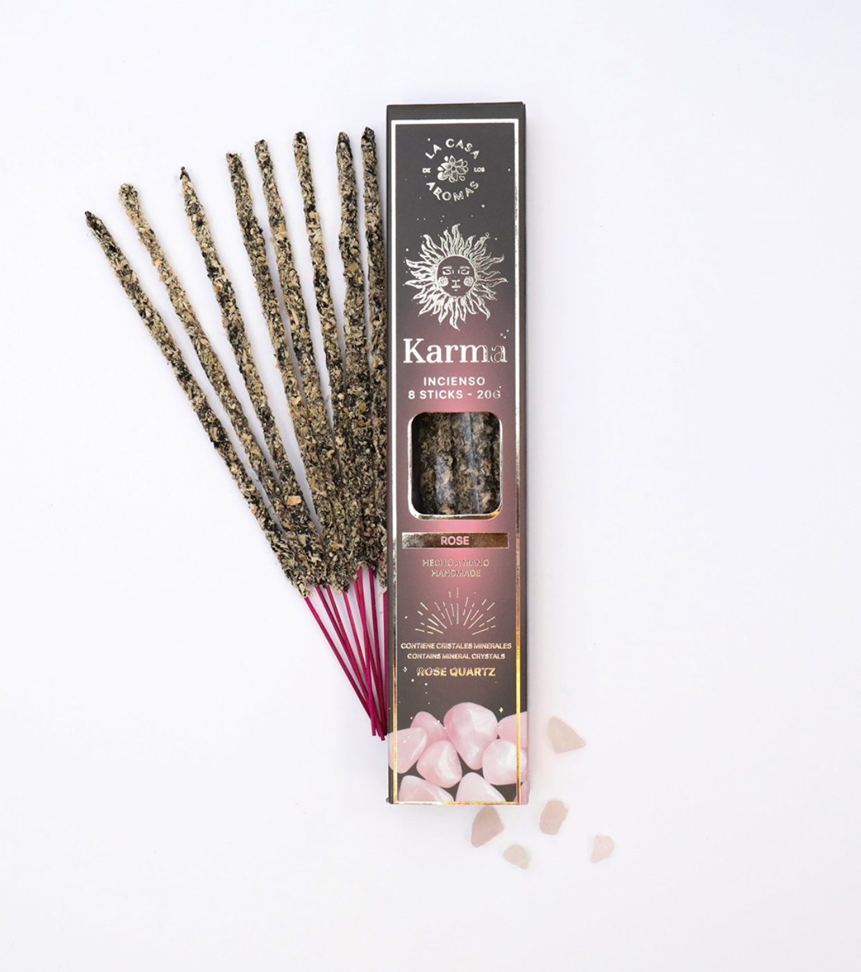 Das samtige Flüstern von Rosenblättern schwebt wie eine sanfte und wohltuende florale Umarmung durch die Luft mit diesem Räucherstäbchen von La Casa de los Aromas .