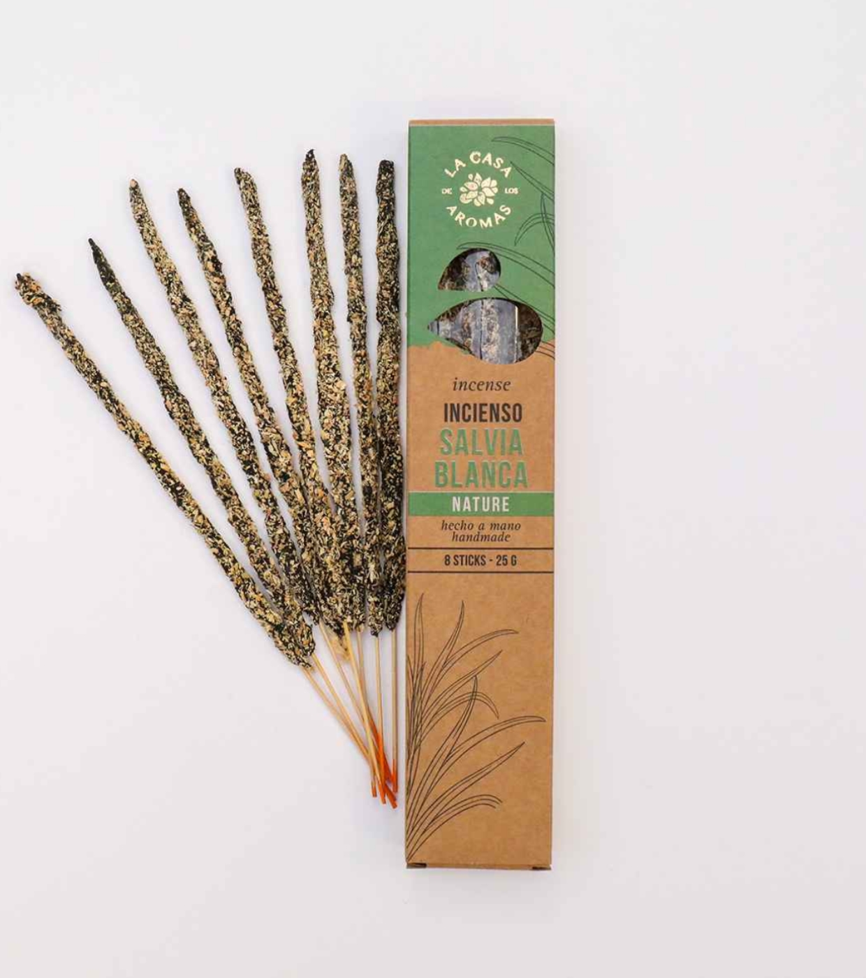 Reinigen Sie Ihren Raum mit den Räucherstäbchen „Weißer Salbei“ von La Casa de los Aromas , einem Kräuter- und Erdduft, der an uralte Rituale der Klarheit und des Schutzes erinnert.