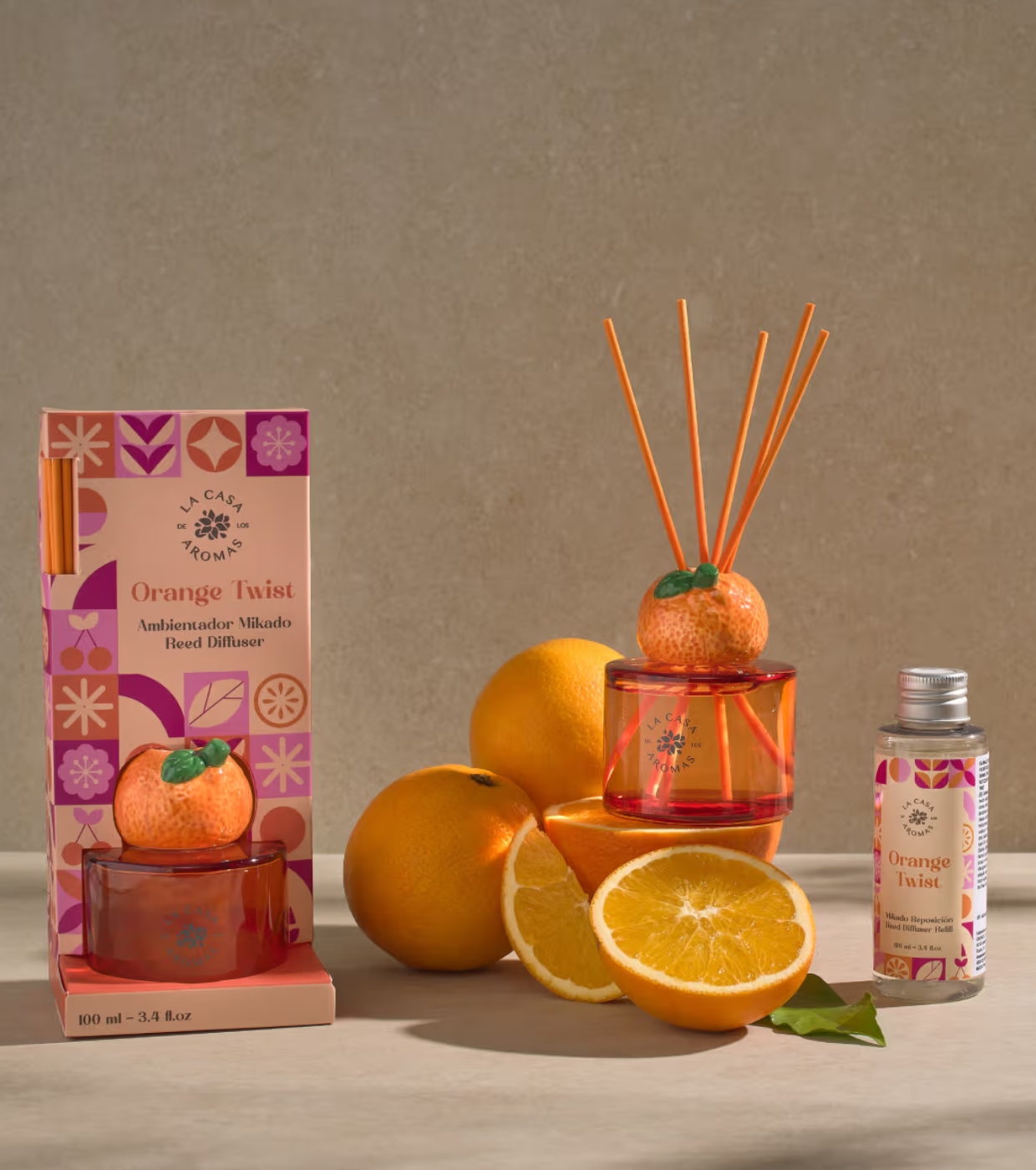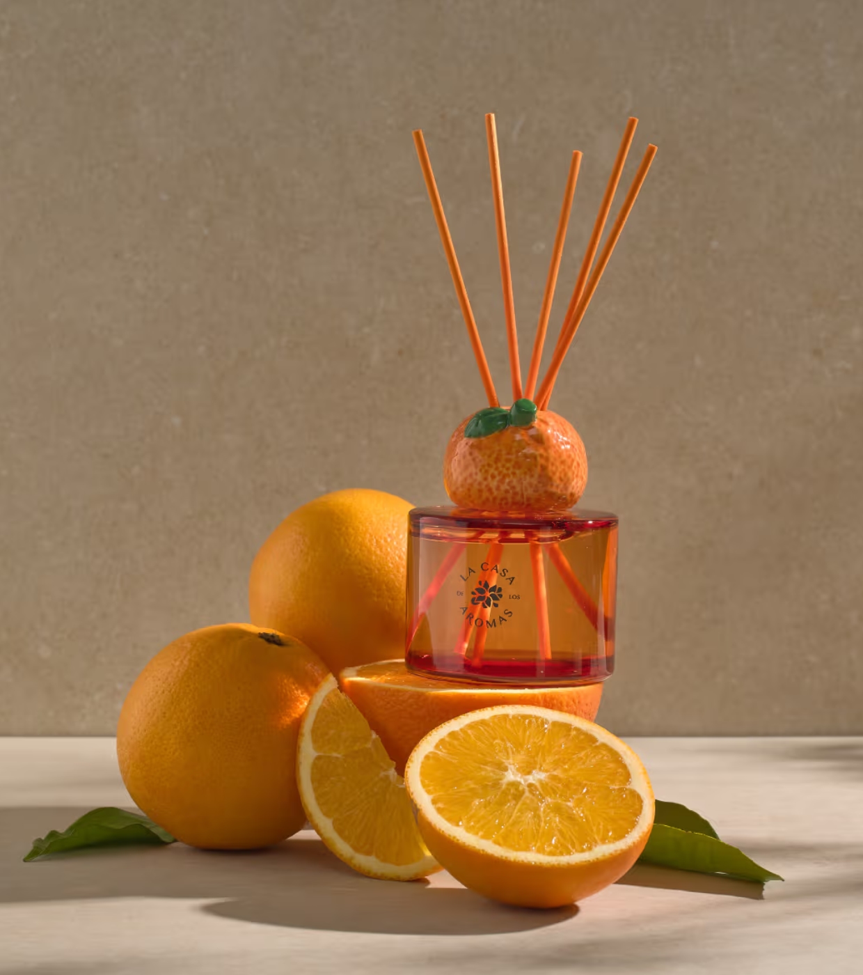 Erfüllen Sie Ihr Zuhause mit Frische und Energie mit Fruity Orange von La Casa de los Aromas , einem dekorativen Raumduft mit Vintage-Inspiration, der eine Hommage an klassische Keramik-Obstschalen darstellt.