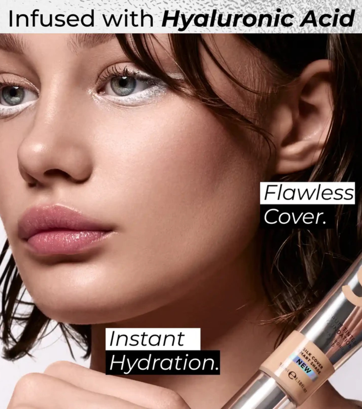 Die feuchtigkeitsspendende Formel schmilzt sofort und hinterlässt ein natürliches Finish, das Trockenheit nicht betont oder Unreinheiten hervorhebt, sondern für ein glattes und gesundes Aussehen sorgt.