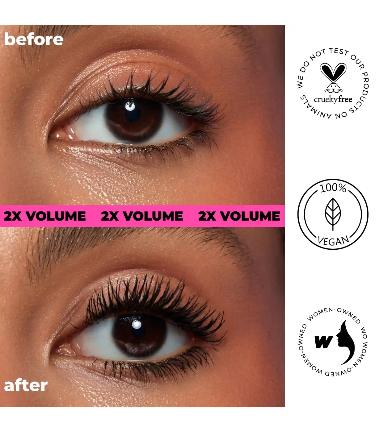 Die Präzisionsbürste mit 360°-Mikroborsten umschließt jede Wimper vom Ansatz bis zur Spitze und sorgt für einen perfekten Schwung und gleichmäßiges Volumen.