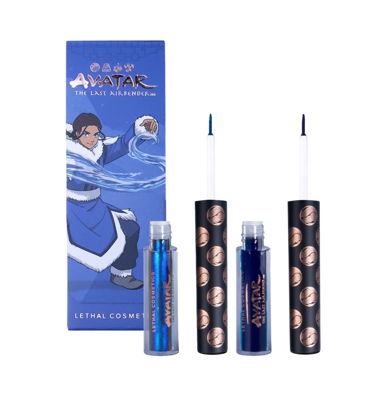 Die Persönlichkeit des Wassers, eingefangen in einem eleganten Set von Eyelinern von Lethal Cosmetics, das zwei perfekte Kontraste vereint: einen ruhigen, matten Ton und ein dynamisches Multichrome-Finish, inspiriert von der Strömung, der Ruhe und der Stärke des Elements Wasser.