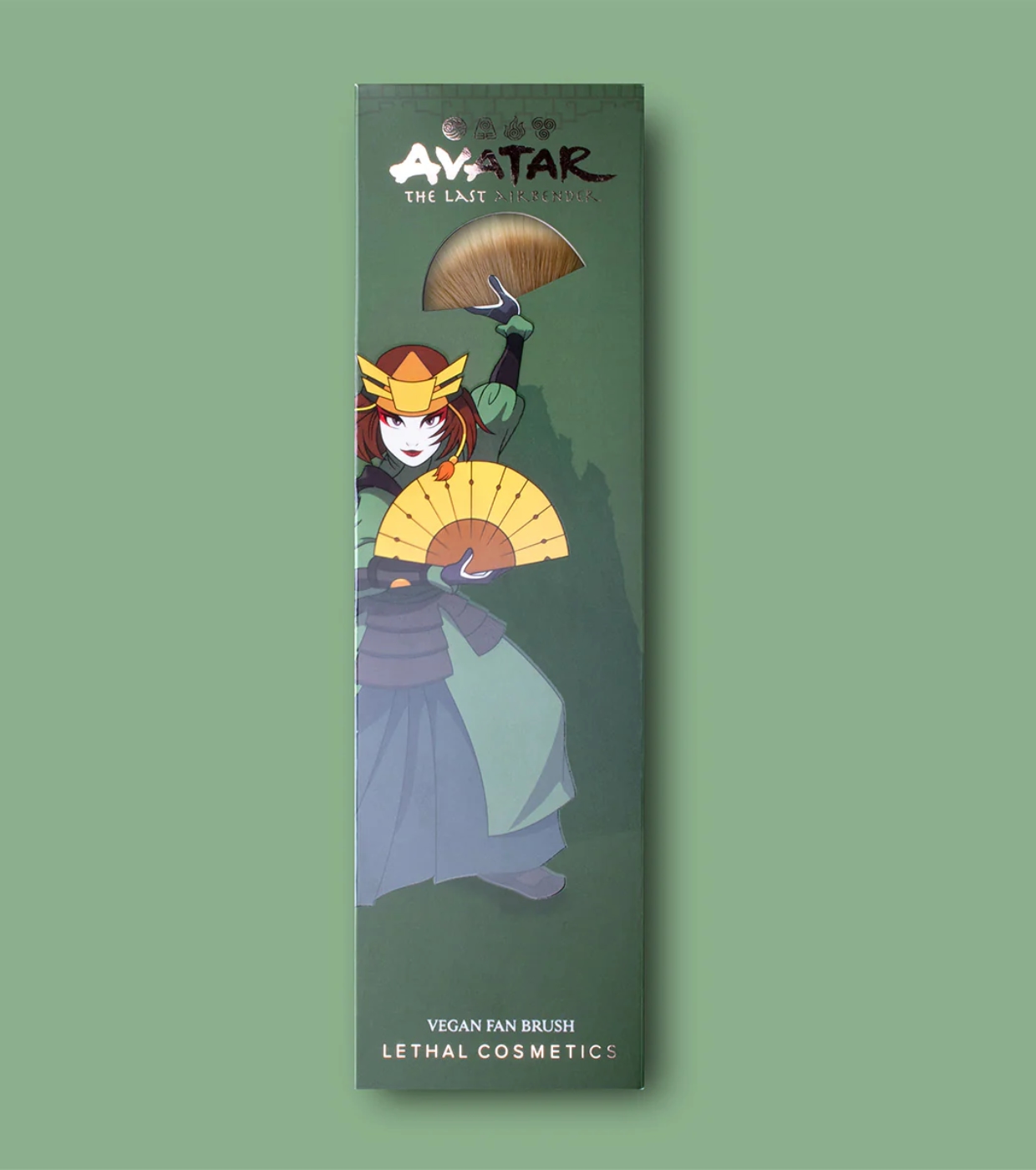 Ein Highlighter-Pinsel Suki Fan von Lethal Cosmetics, inspiriert von der legendären Kriegerin Kyoshi und ihren ikonischen Kriegsfächern, der Schönheit, Präzision und Charakter vereint.