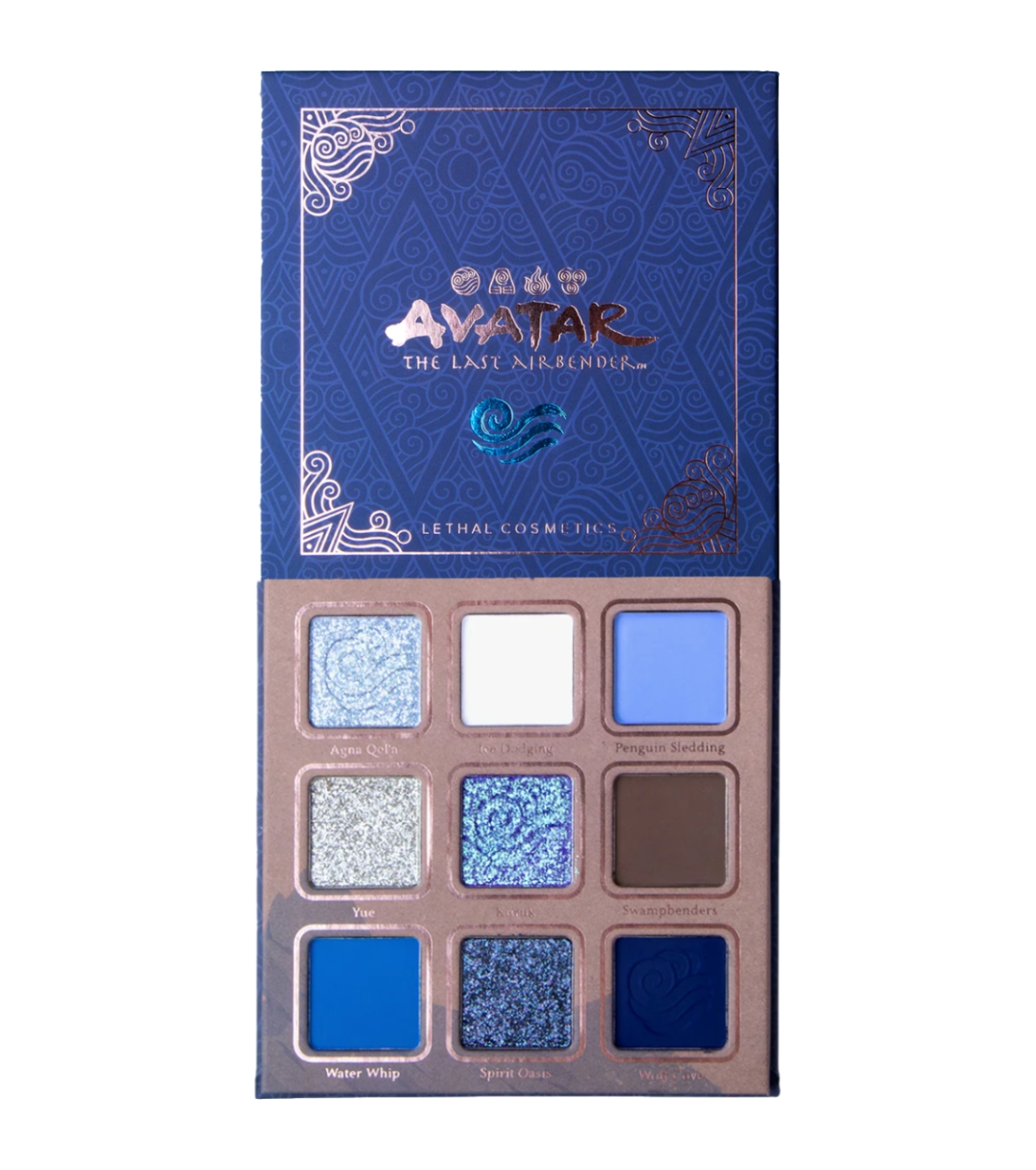 Entfessle deinen inneren Wassermeister mit dieser Lidschattenpalette von Lethal Cosmetics , die vom Wasserstamm inspiriert ist.