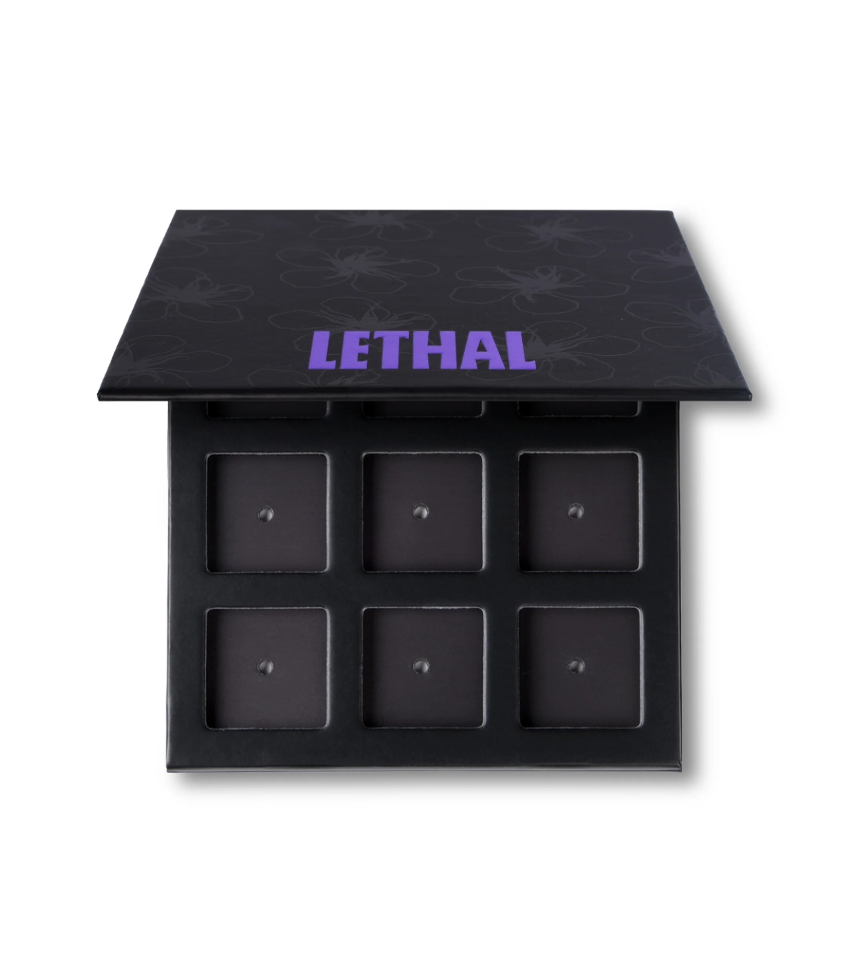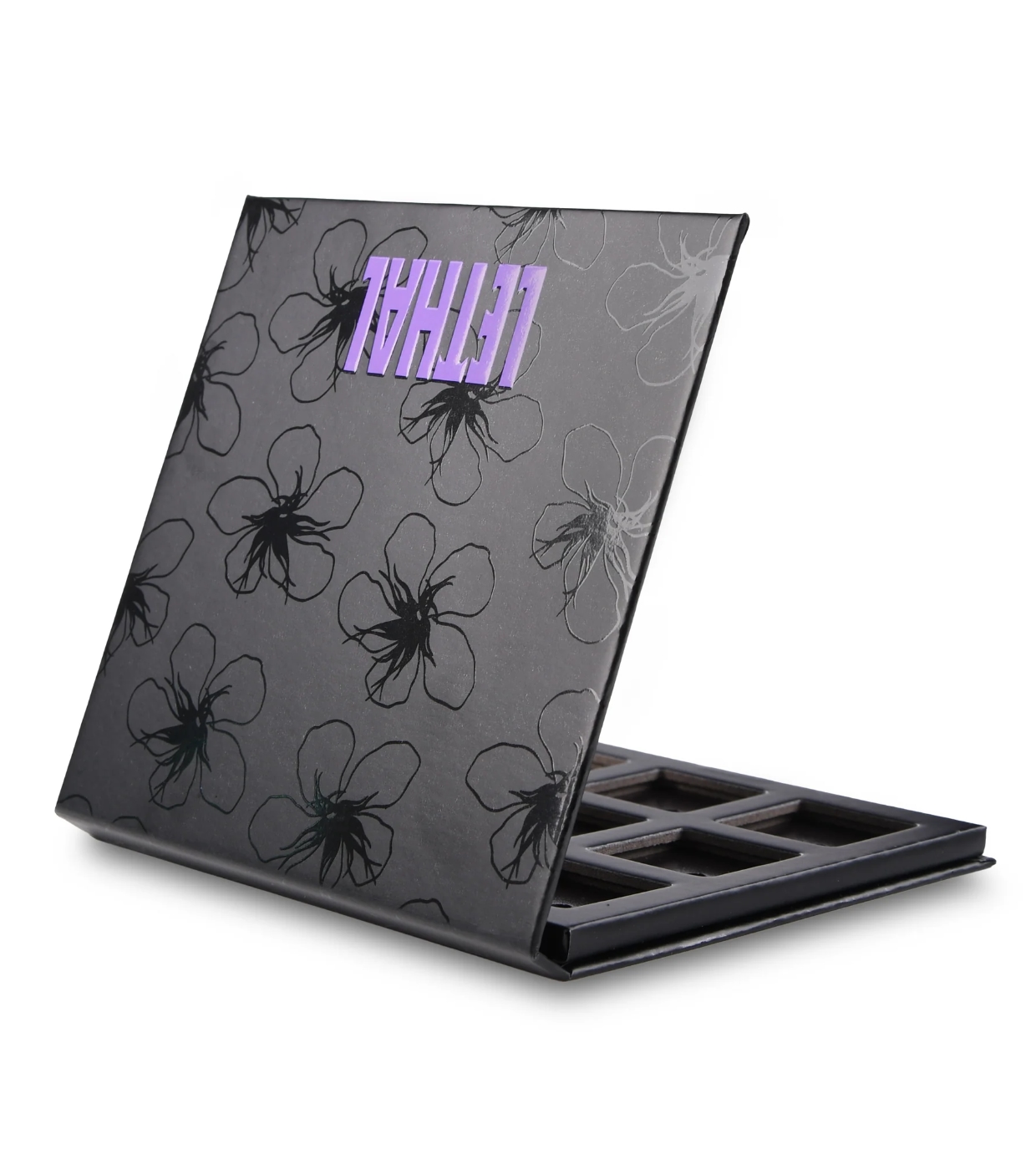 Die magnetische Palette Oleander 9 von Lethal Cosmetics ist eine kompakte, robuste und vollständig individualisierbare Palette für 9 Lidschatten oder wasserbasierte Eyeliner, die von unserem hauseigenen Make-up-Artist entworfen wurde.