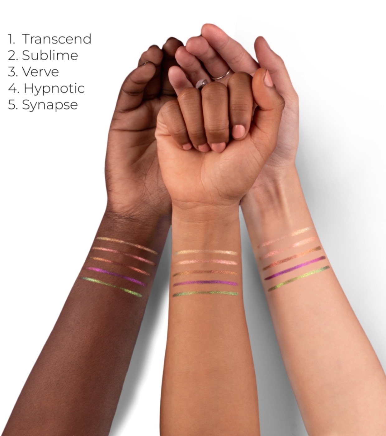 Diese multichromatischen Eyeliner sind in 5 Farbtönen erhältlich: Sublime, Transcend, Synapse, Hypnotic, Verve.