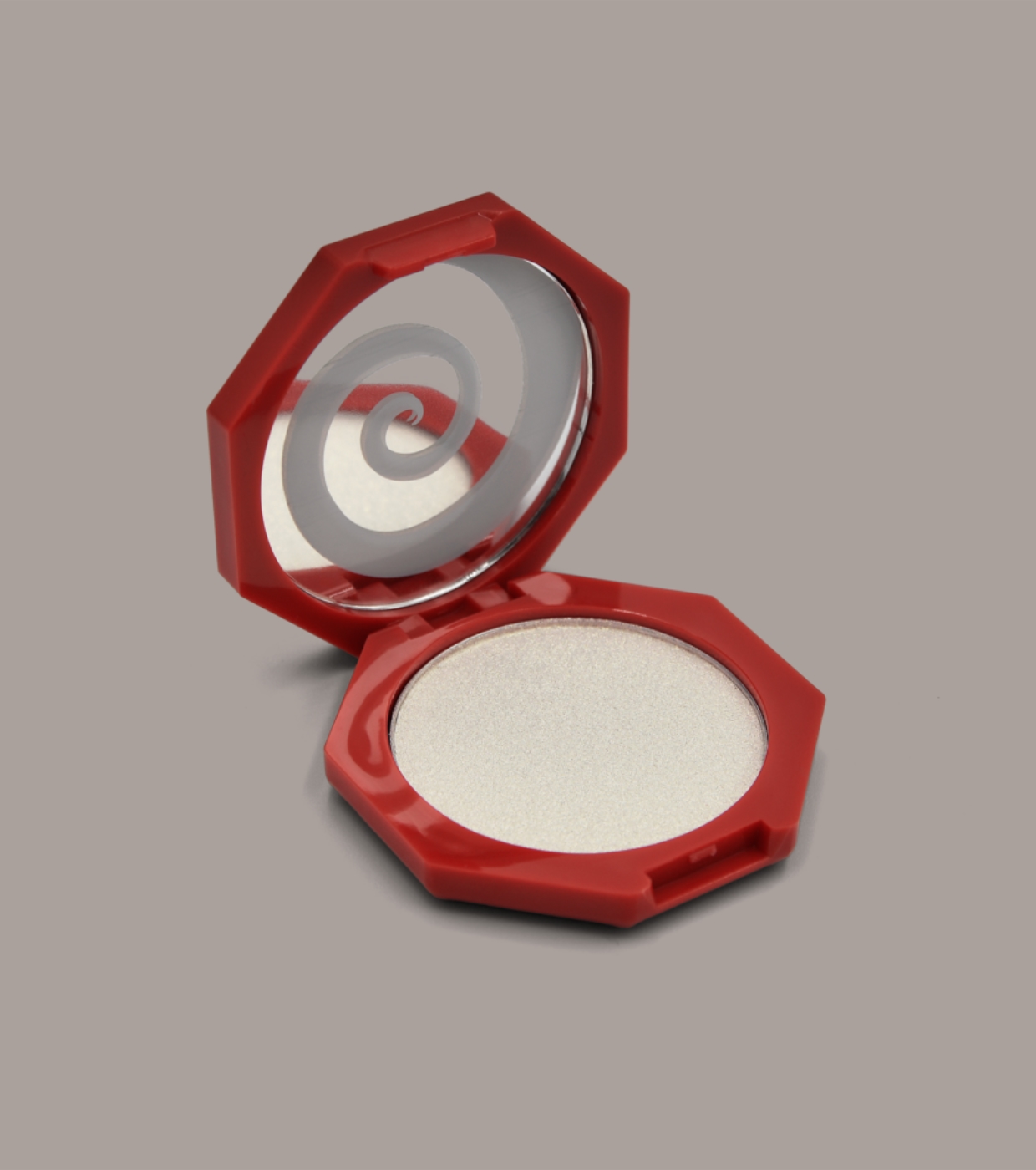 Der Highlighter verfügt über eine durchscheinende Basis mit einem Champagner-Pfirsich-Duochrome-Finish, das die natürliche Ausstrahlung des Teints verstärkt und allen Hauttönen schmeichelt.