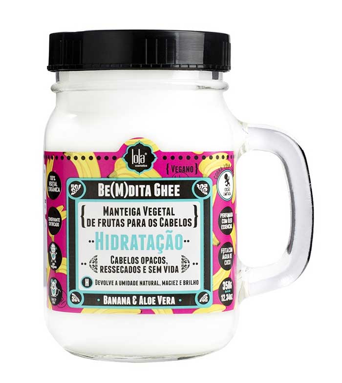 Banane und Aloe Vera Feuchtigkeitsmaske Be(m)dita Ghee besonders geeignet für trockenes und stumpfes Haar.
