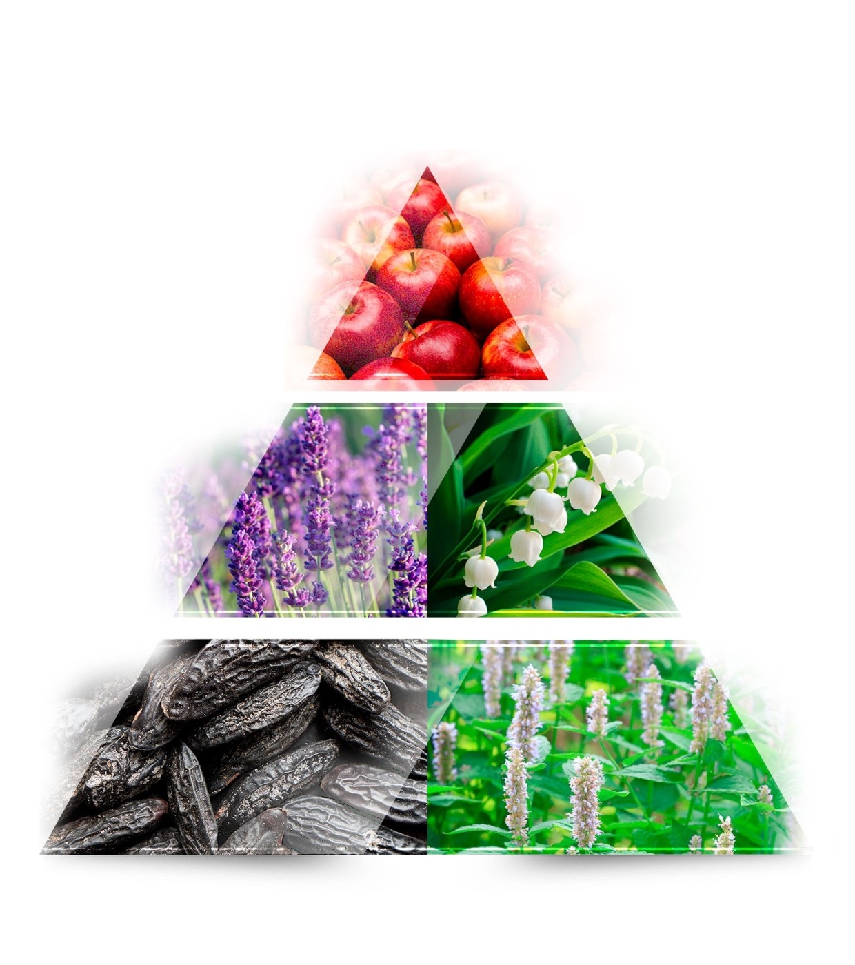 Im Zentrum des Duftes vereint sich Lavendel mit Maiglöckchen und Veilchen zu einem eleganten und charaktervollen Aromaakkord.