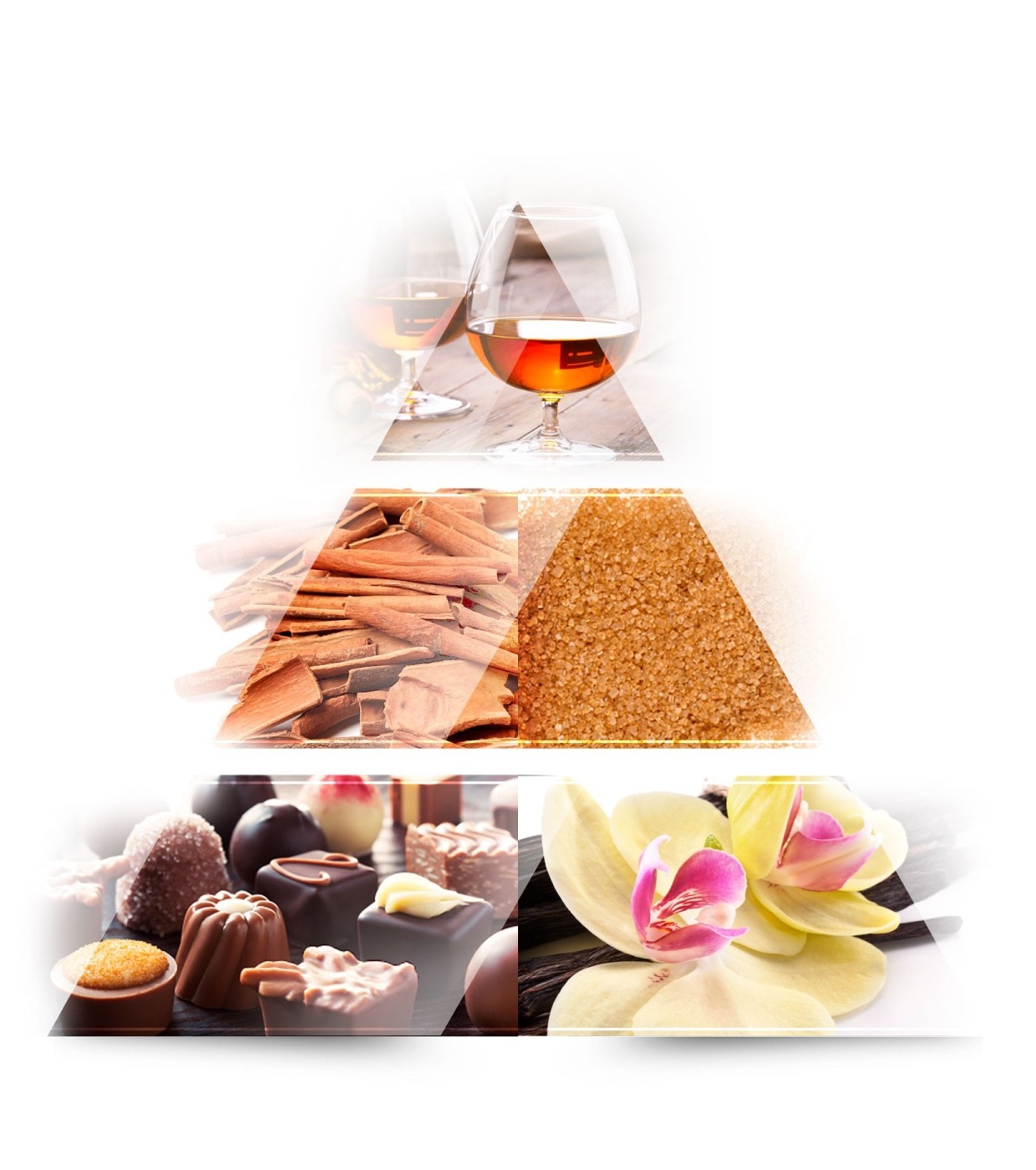 In der Kopfnote vereint sich der exklusive Charakter des Cognacs mit leuchtenden Nuancen von Orange und Apfel und erzeugt so einen warmen und unwiderstehlichen Eindruck.