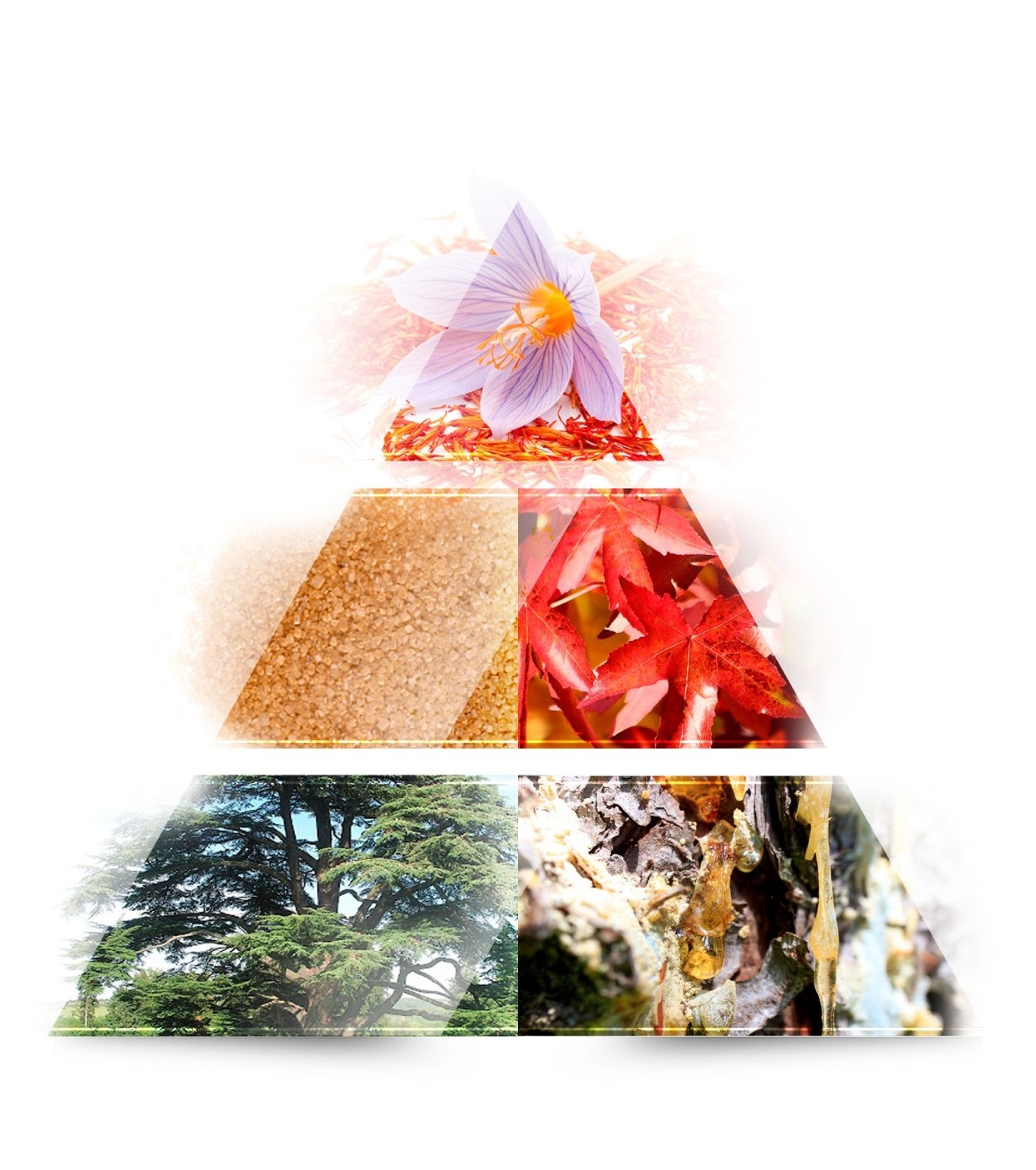 Im Kern verleihen Noten von Ambra, Amberholz und braunem Zucker dem Duft Wärme und eine geheimnisvolle Atmosphäre.