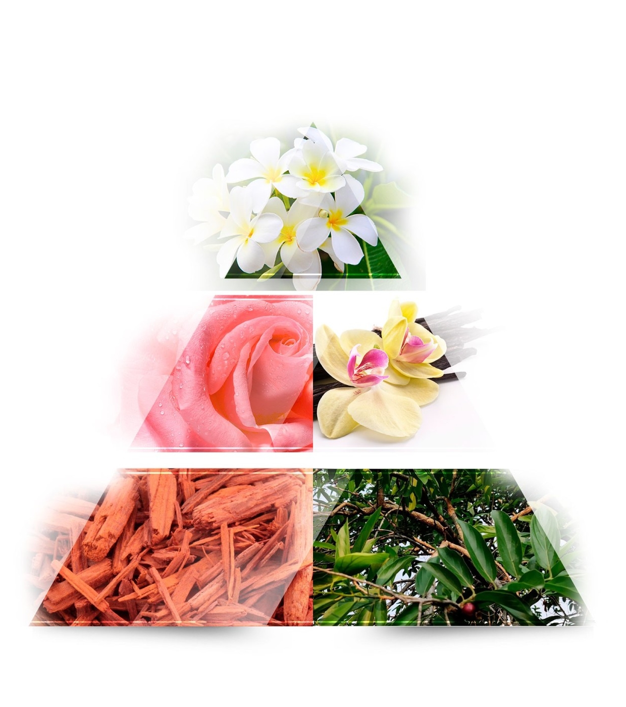 In der Kopfnote offenbart sich ein zarter und leuchtender floraler Akkord aus Tiaré, Ylang-Ylang und Mimose, der eine warme und leicht süße Note verleiht.