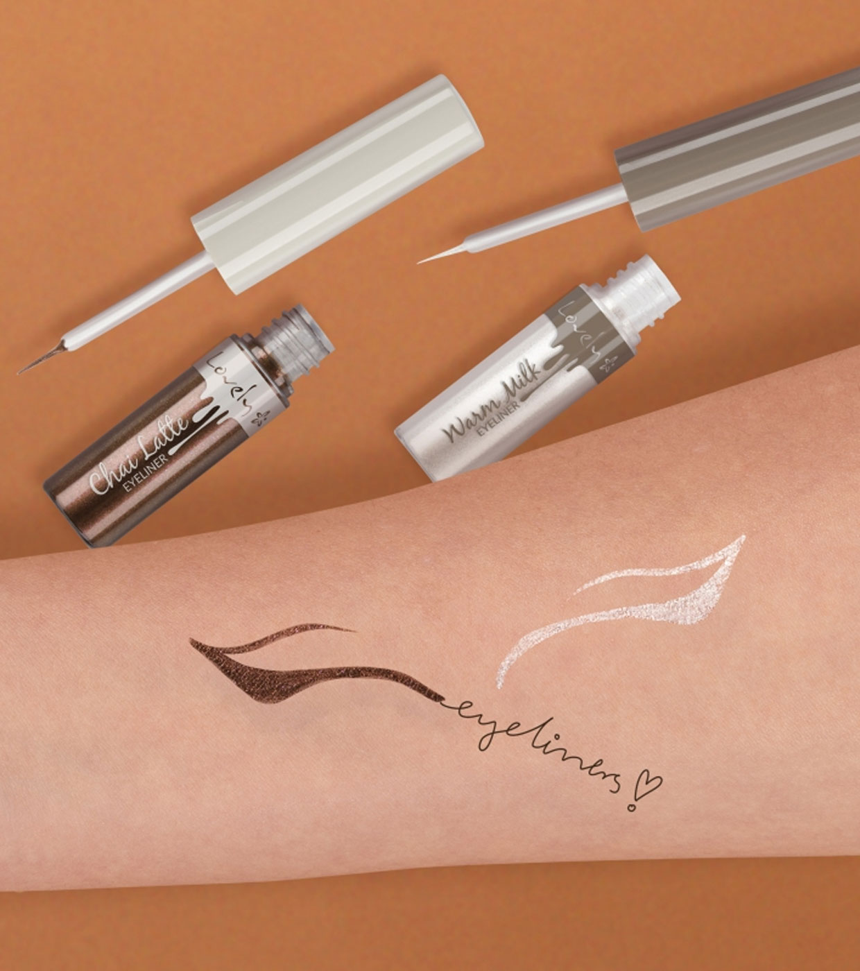 Die intensive braune Farbe und das metallische Finish unterstreichen die Tiefe des Looks und betonen den Wimpernkranz und die Augenkontur.