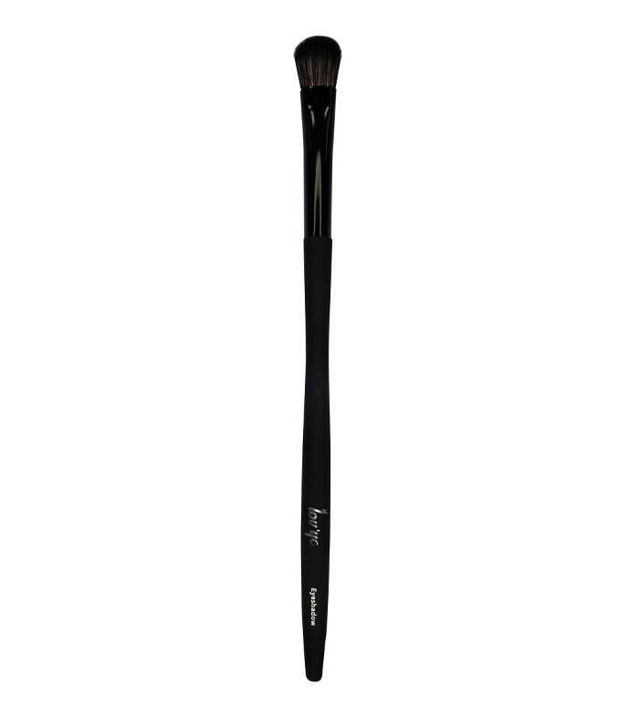 Es ist ein abgerundeter Synthetikhaarpinsel, der zum Auftragen von Puderschatten geeignet ist.