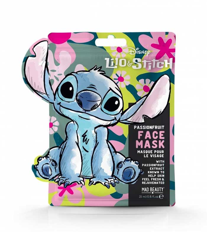 Die Gesichtsmaske ist mit dem Gesicht von Stitch bedruckt und steckt voller Inhaltsstoffe, die helfen, müde Haut zu erfrischen und zu pflegen.