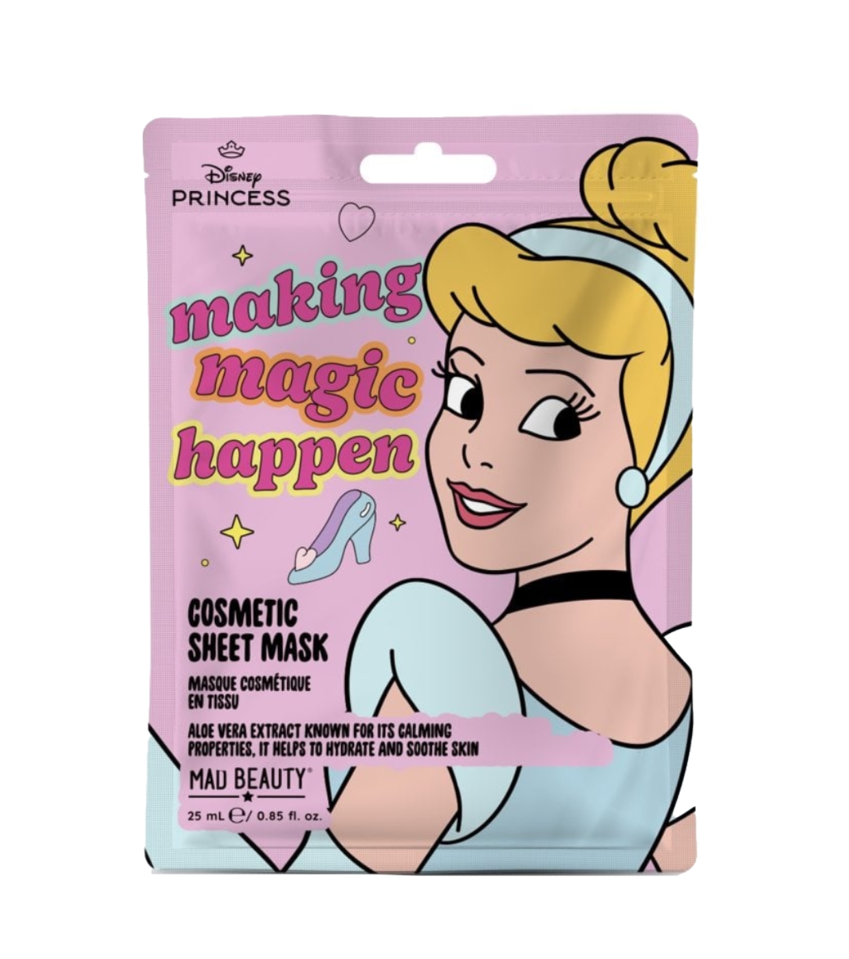 Zeigen Sie traumhafte Haut mit dieser Gesichtsmaske von Mad Beauty mit dem Aufdruck der Disney-Prinzessin Cinderella. Sie ist perfekt, um Ihre Haut vor dem Schminken vorzubereiten oder sie nach einem langen Tag zu entspannen.