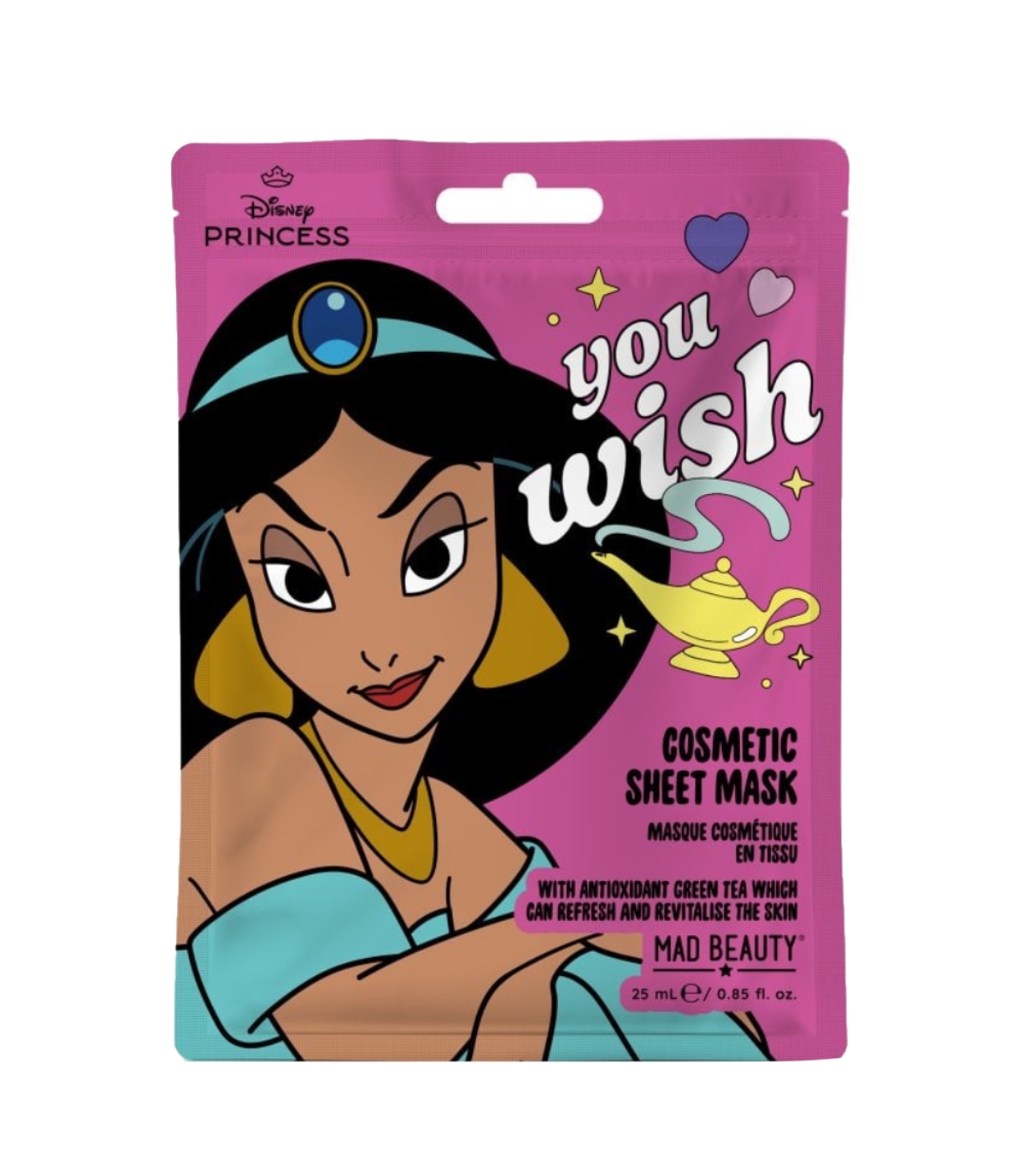 Entdecken Sie eine Welt der Schönheit für Ihre Haut mit dieser bedruckten Gesichtsmaske von Mad Beauty mit Disneys Prinzessin Jasmin.