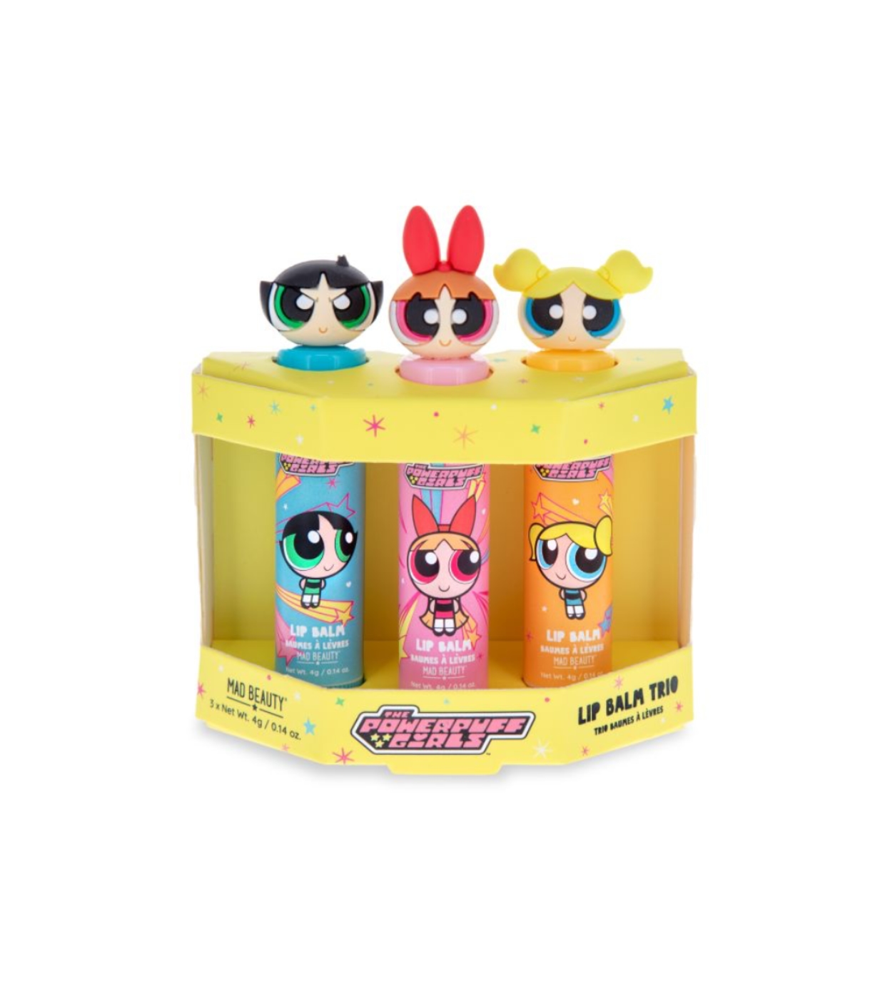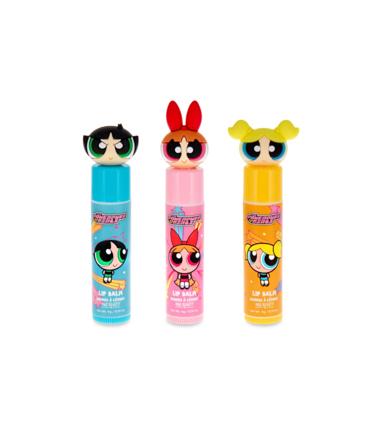 Inspiriert von den mutigen Powerpuff Girls Petal, Bubbles und Cactus enthält dieses bezaubernde Set drei Lippenbalsame mit unwiderstehlichen Düften: Kokosnuss, Kirsche und Pfirsich.