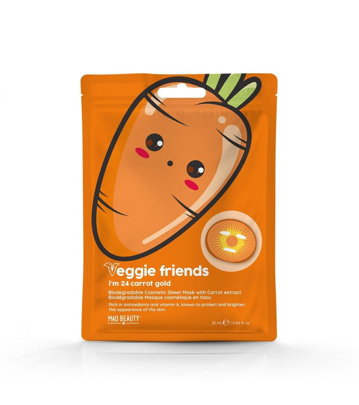 Gesichtsmaske mit Karottenextrakt I´m 24 Carrot Gold aus der Veggie Friends-Kollektion von Mad Beauty.