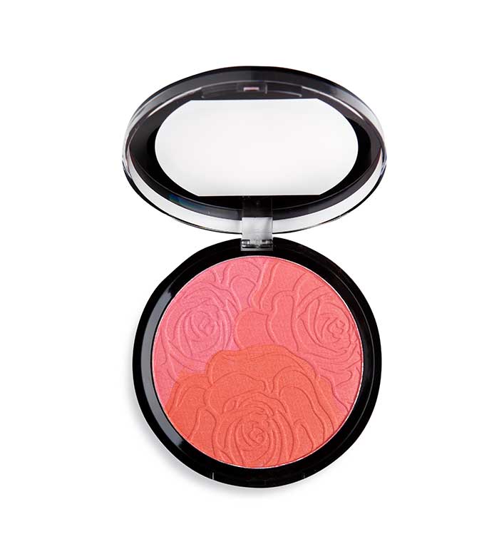 Dieses schöne Rouge in drei verschiedenen Rosatönen (pudrig, hellrosa und korallenrot) mit sanften Schimmerpartikeln.